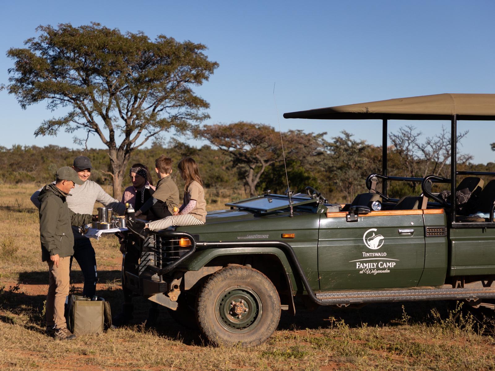 * Game drives Open 4×4 safari vehicles are equipped with radios for communication, ponchos for wet weather and individual blankets for early morning and evening chill, as well as spotlights for night viewing.