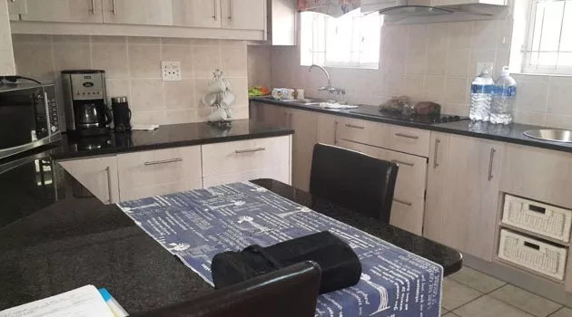 Room 3, and 4 accommodate 2 adults each and both rooms have a double bed. There is also a TV and en-suite bathroom with a shower/bath, basin and toilet. A communal lounge area where guests can relax and there is a fully equipped kitchen available for guests’ use at an additional cost. There are also braai facilities. The balcony offers breathtaking views over the bay and town lights.