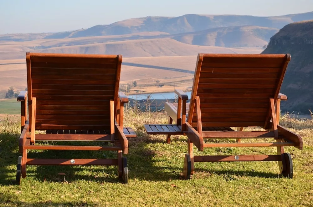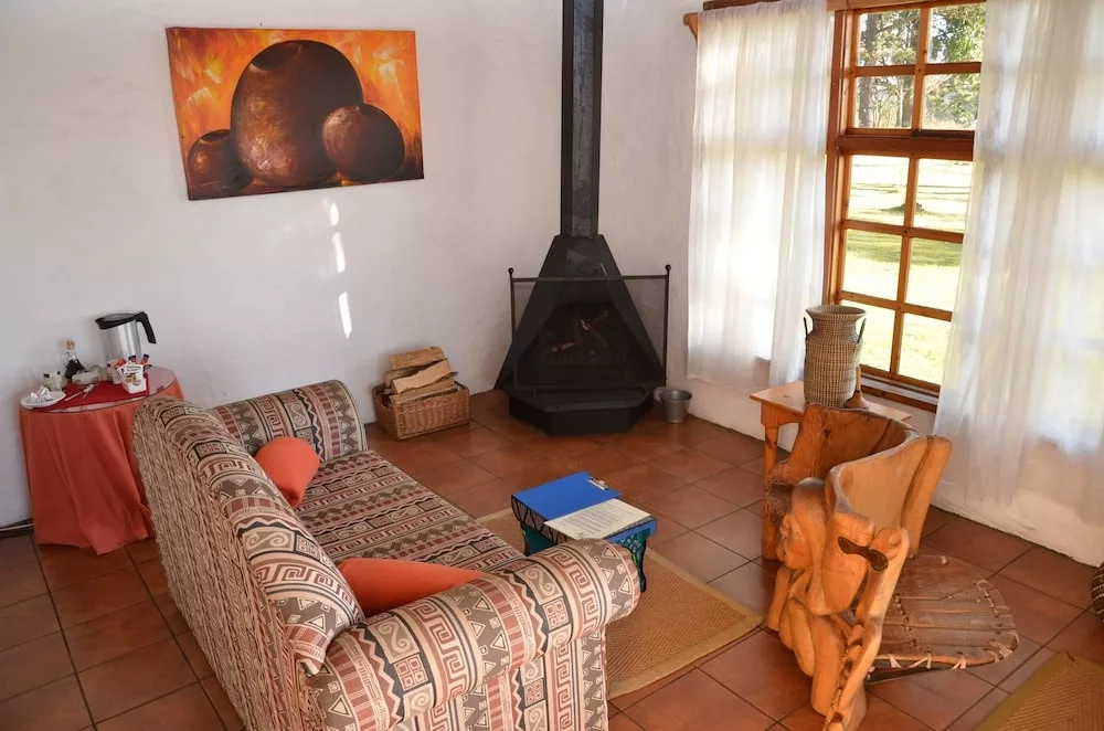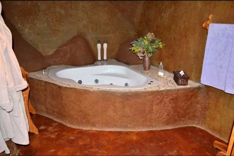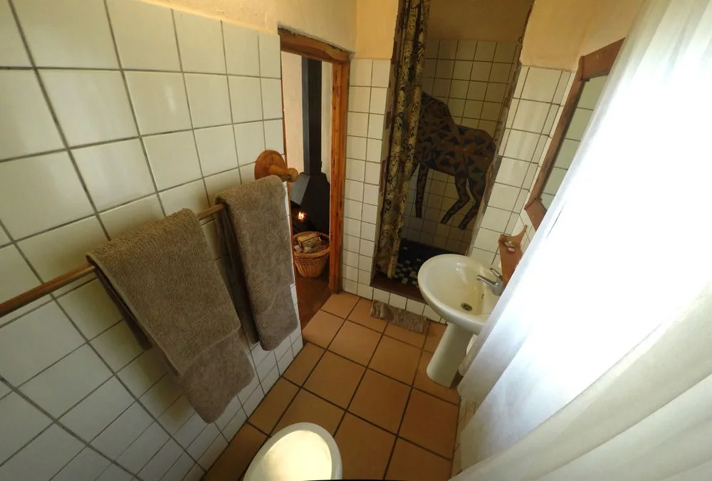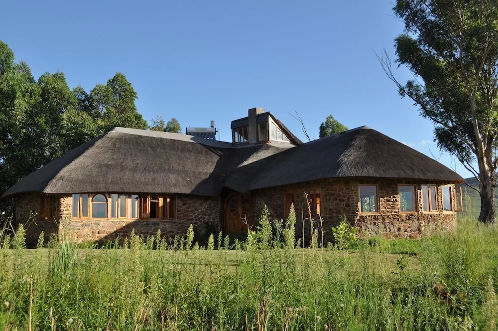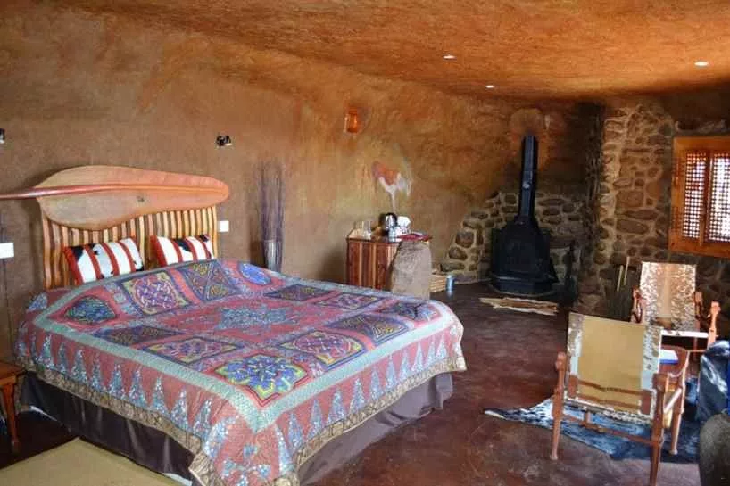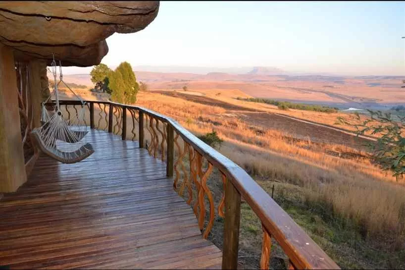 What makes our lodge particularly special is that we offer accommodation in a luxury cave. This is an accommodation unit built under a rock. Glass doors open onto a wooden deck with hammock chairs and a spectacular view of the Drakensberg Mountains. This is a luxury eco experience. The cave is cosy and comfortable with features like a Jacuzzi spa bath and a fireplace and even has rock art on its walls.