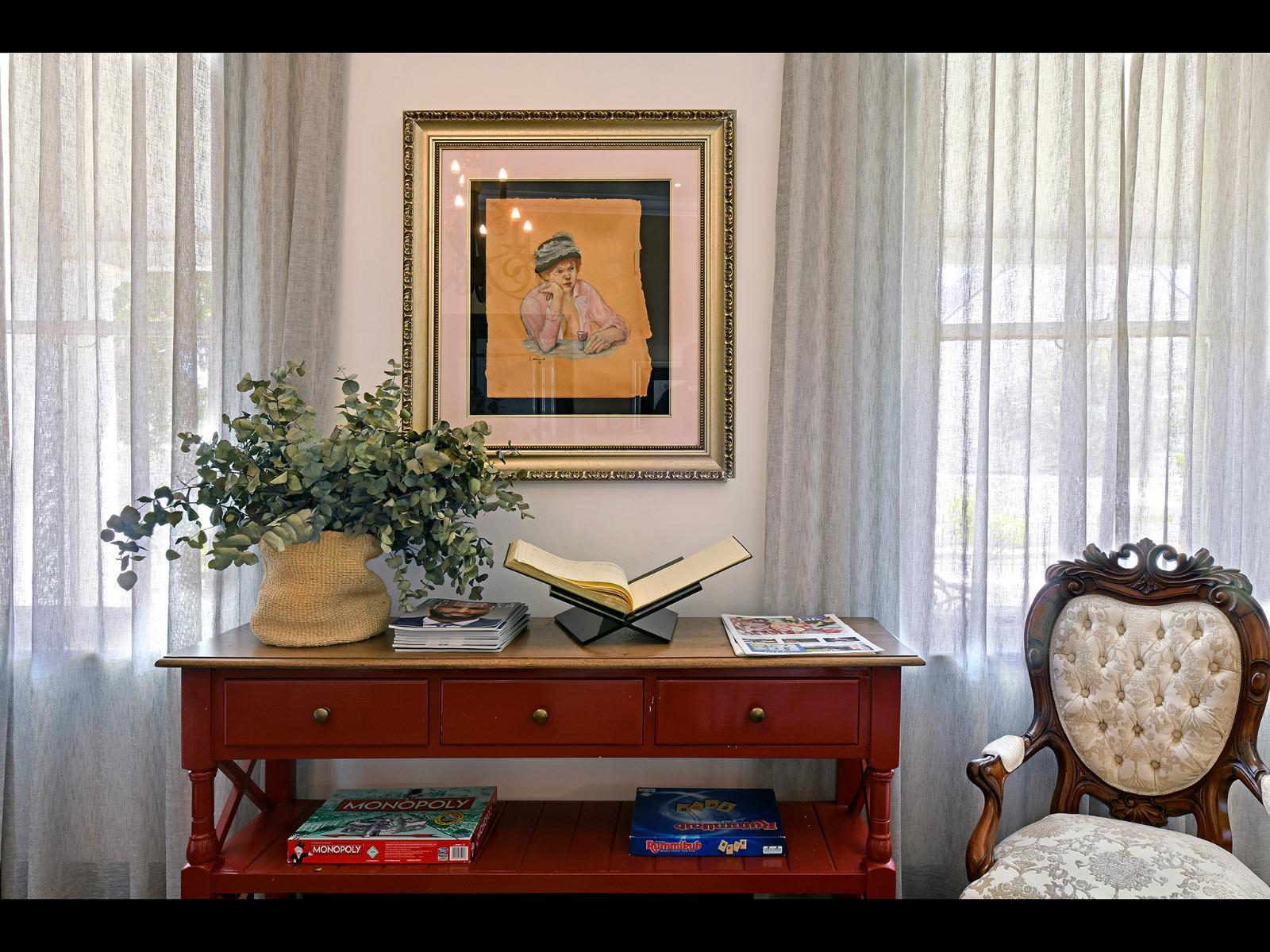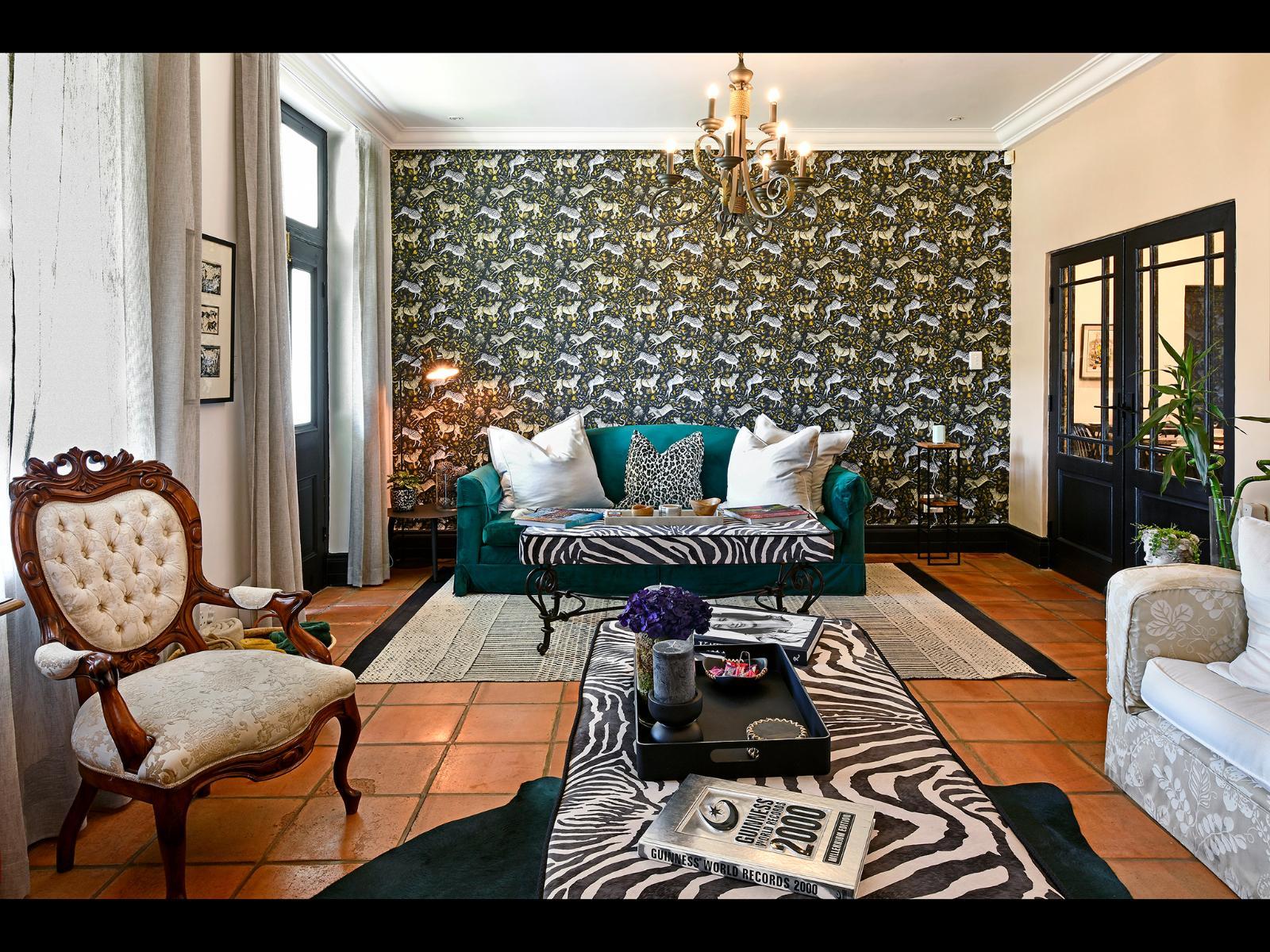 There is a spacious and supremely comfortable guest sitting room with a stone fireplace and double doors leading from this room to a shady veranda. The sophisticated décor of the house reflects the period elegance of its past combined with modern contemporary design.