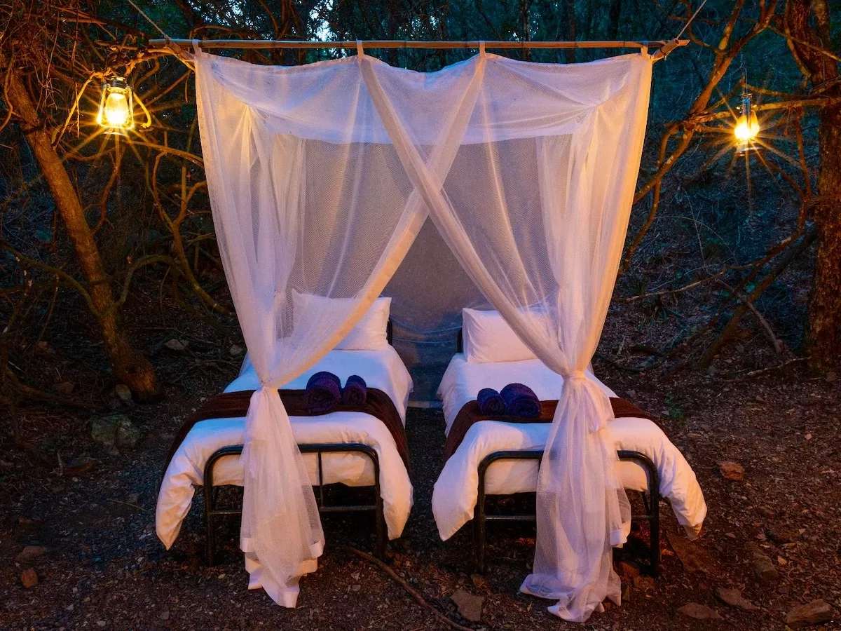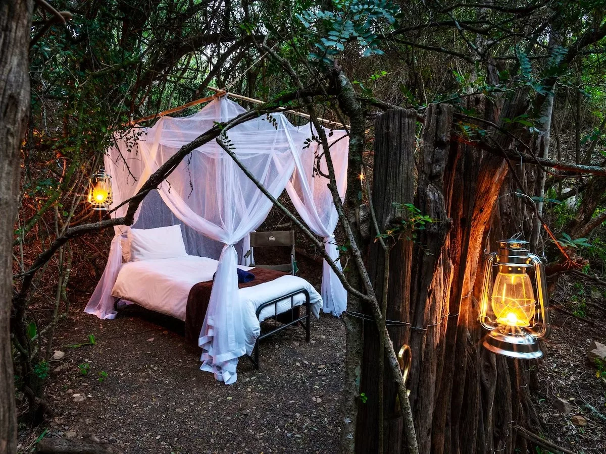 Shielded by the enveloping forest, deep in the game reserve, spend a night or two under the open sky in a cocoon of luxuriously soft bedding. Walls and roofs are replaced by trees strung with twinkling lights and the only barrier between you and nature is the gauzy film of draped netting – but mosquitoes won’t be bothering you here. The whisper of the trees will hush you to sleep, the magical illumination of a billion stars offer a skylight view like no other.