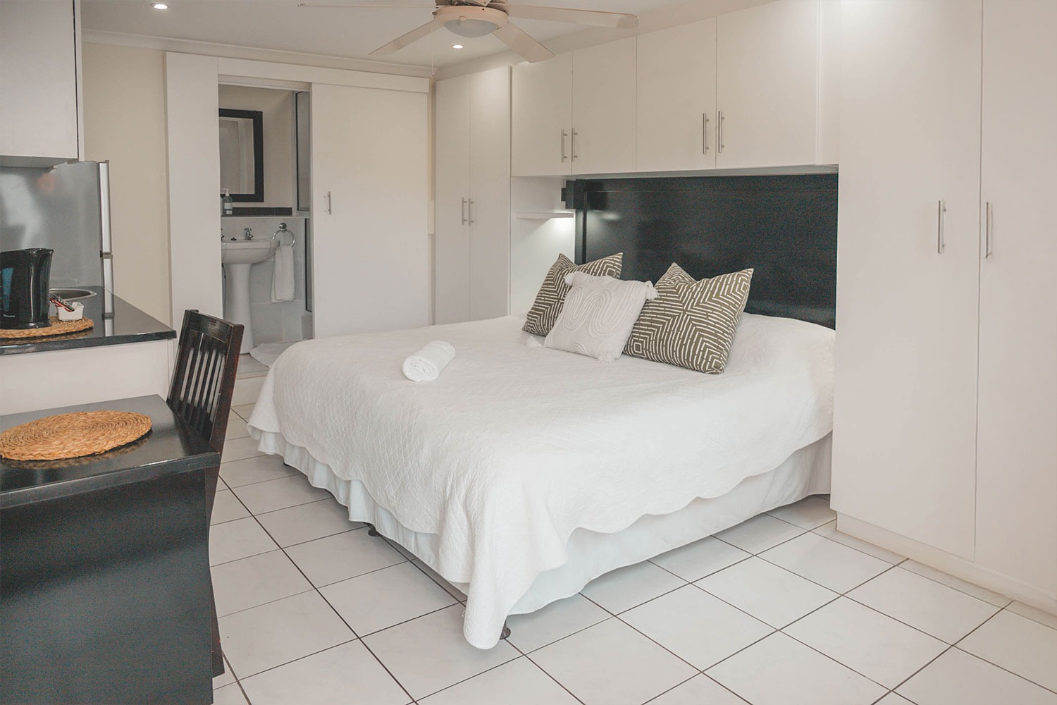 Breathe a breath of fresh air in our comfortable, clean, minimalistic-styled rooms. Our big luxurious beds, crisp white linen and lush garden space will have you feeling right at home while on holiday. Choose between our double or three sleeper rooms, with a pool, garden or courtyard view. Each room contains air-conditioning, free Wi-Fi, and a host of other luxuries for convenience.