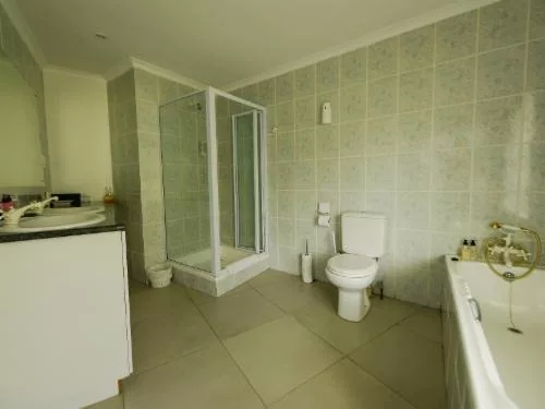 Luxurious en-suite bathroom with walk-in shower and separate spa bath.