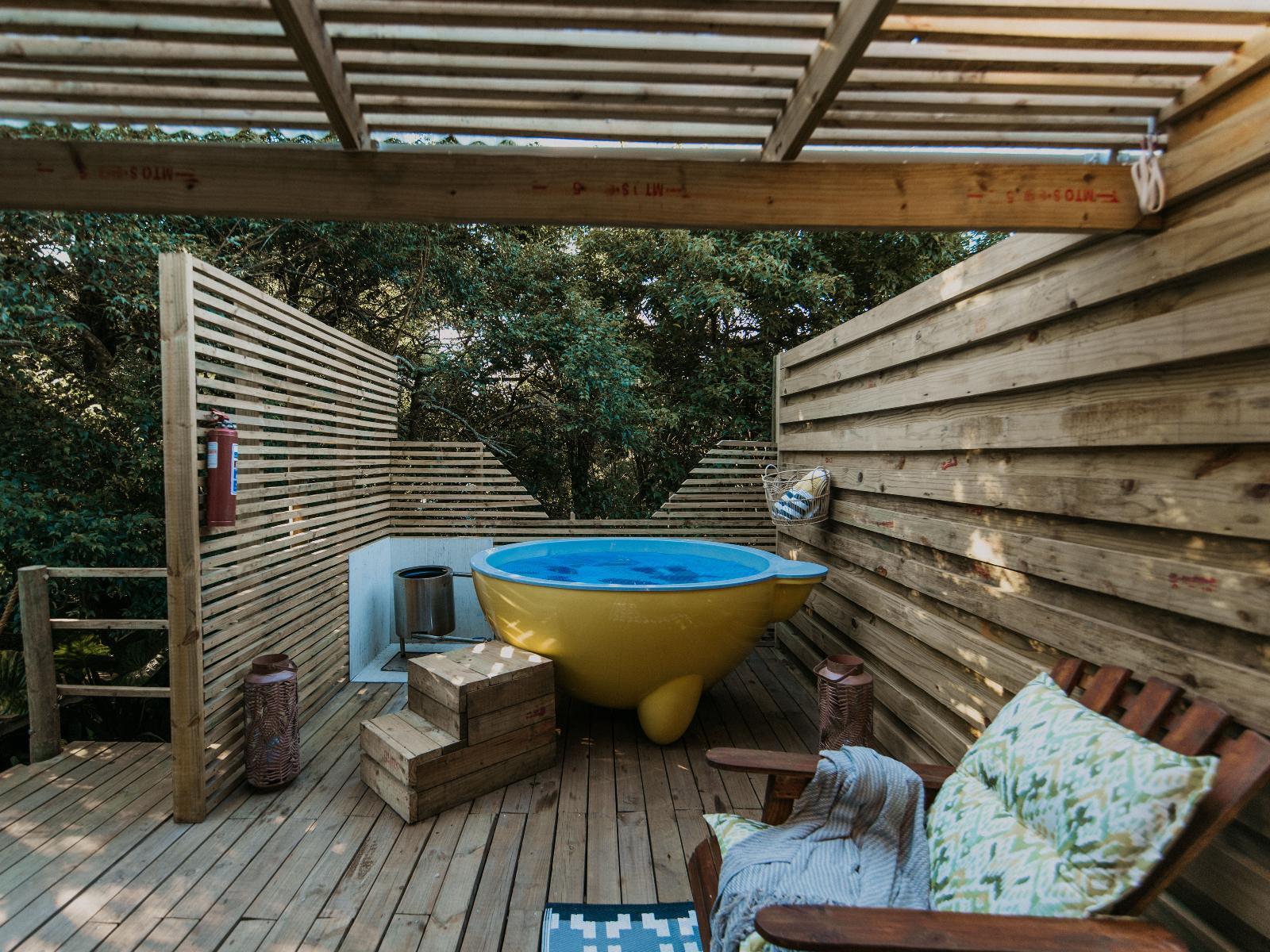 The Cacoon is a unique one of a kind accommodation suspended in the trees it offers an amazing views of the forest – walk along a suspended walk way to your one of kind bathroom offering a shower. The cacoon offers wifi, airconditing, a TV with Netflix.
