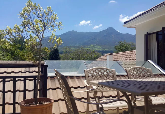 Enjoy the warm welcome and friendly hospitality of our Guesthouse with a magnificent view of the mountains. We are ideally situated 5 minutes from the town centre, adjacent to golf courses and 15 minutes from the airport, mall, beaches & forest walks. It is an ideal location to use as a base to unwind, tour our golf courses or explore the Garden Route.