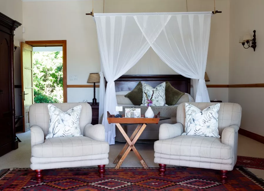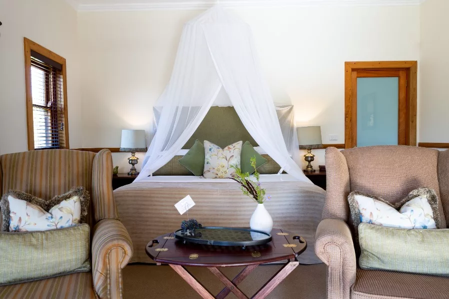 - 4 Garden Suites: Attached to the main house, these suites offer convenient access to all lodge facilities, blending comfort with the beauty of their natural surroundings.