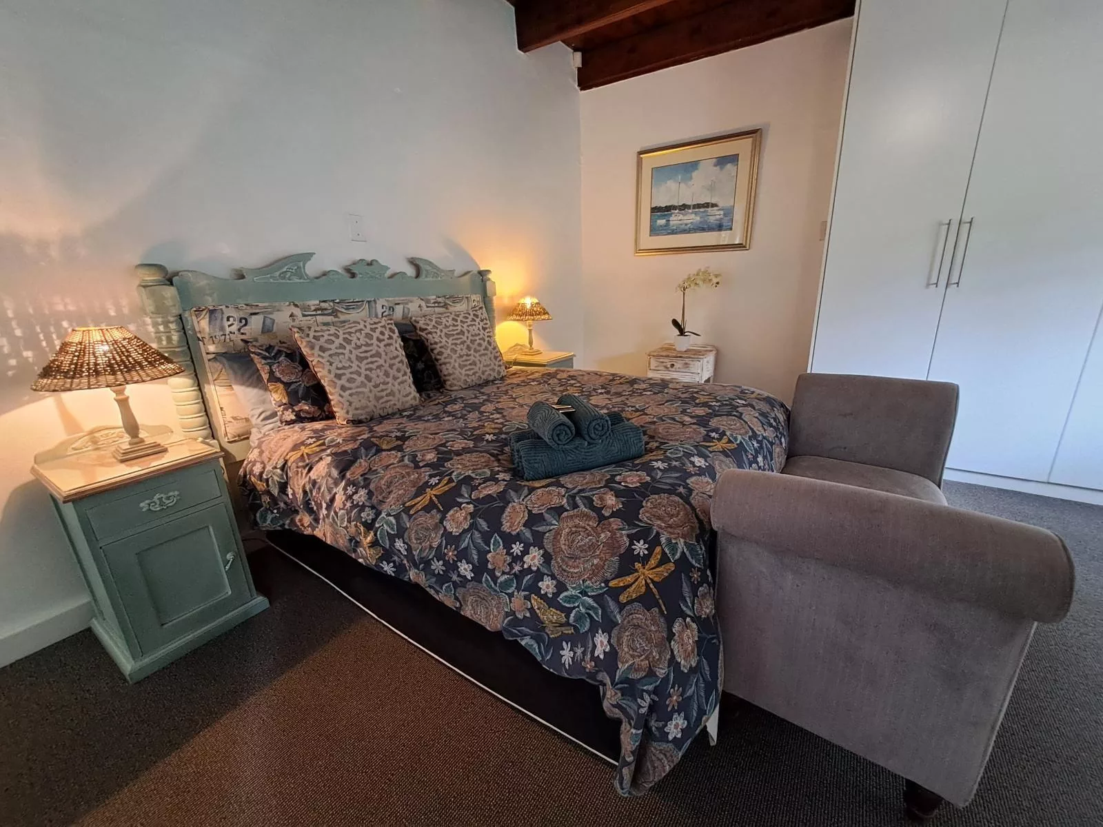Accommodation is offered in two garden rooms and a garden cottage. The rooms represent the ultimate in style and comfort. Each is unique and individually decorated with the greatest attention to detail, using antique furnishings and fittings. The tastefully decorated garden rooms can each accommodate 2 guests in a queen-size bed. The lovely garden cottage can also accommodate 2 guests in a queen-size bed and an en-suite bathroom.