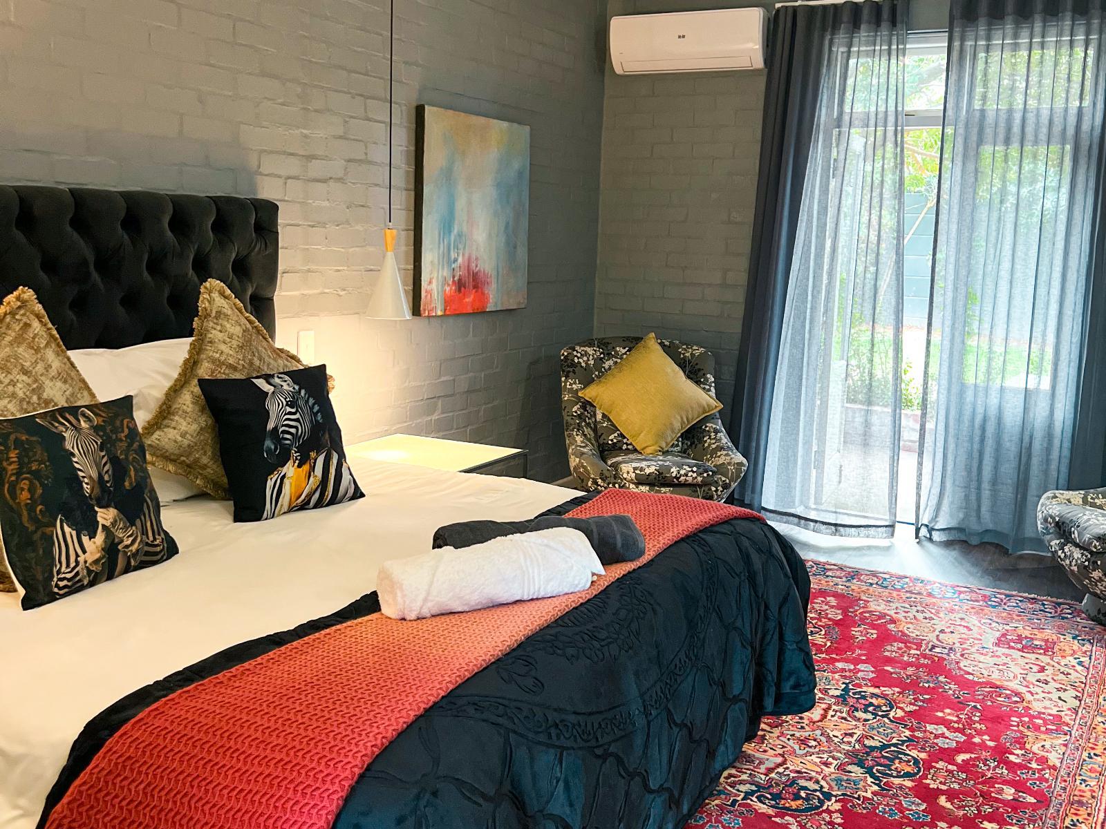 Each garden suite features a king-size bed and an en-suite bathroom with a shower and bath. Each room has a flat-screen TV with DStv, Wi-Fi, air-conditioning, tea/coffee facilities, and a small patio with garden chairs overlooking the beautiful gardens.