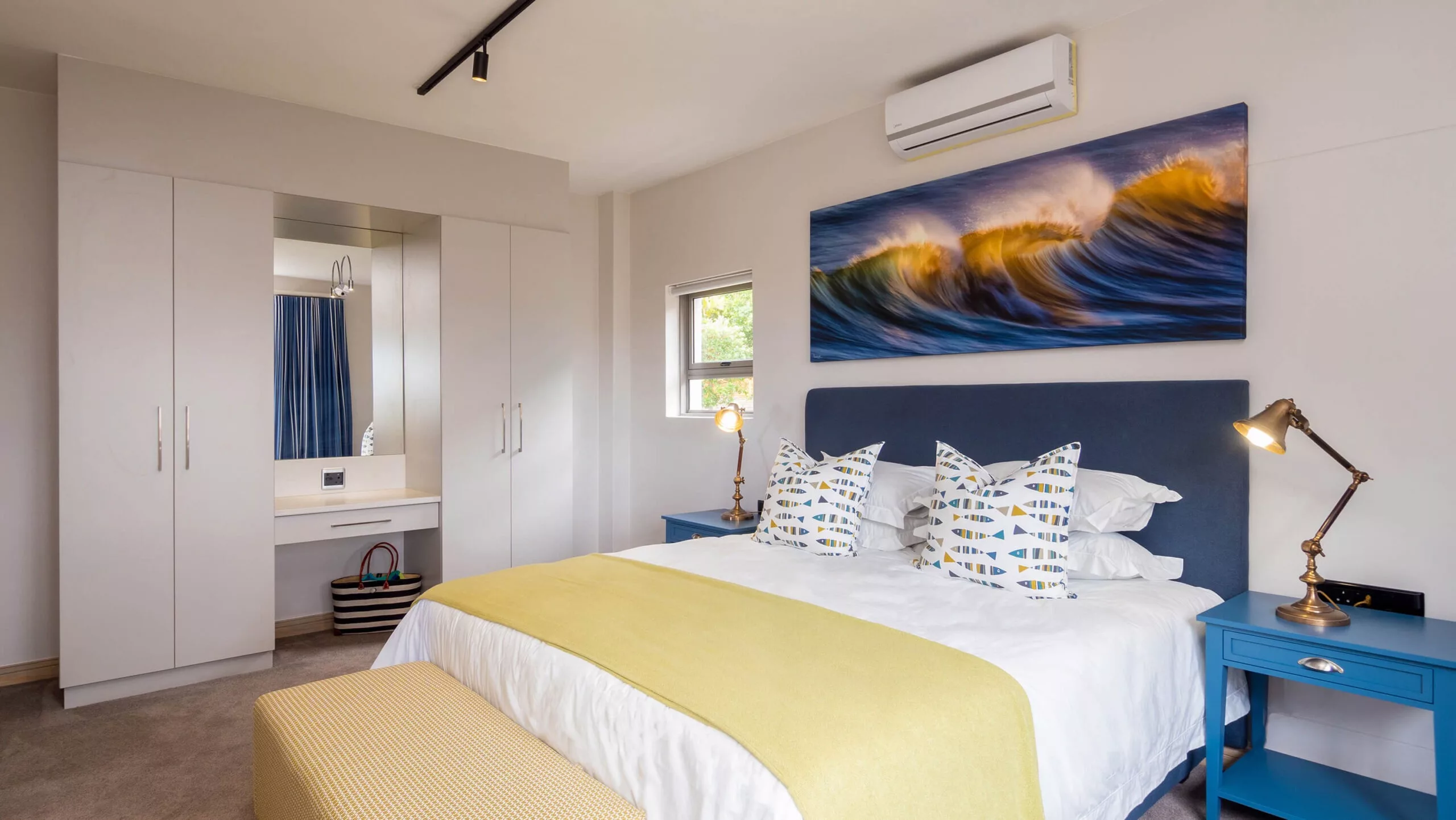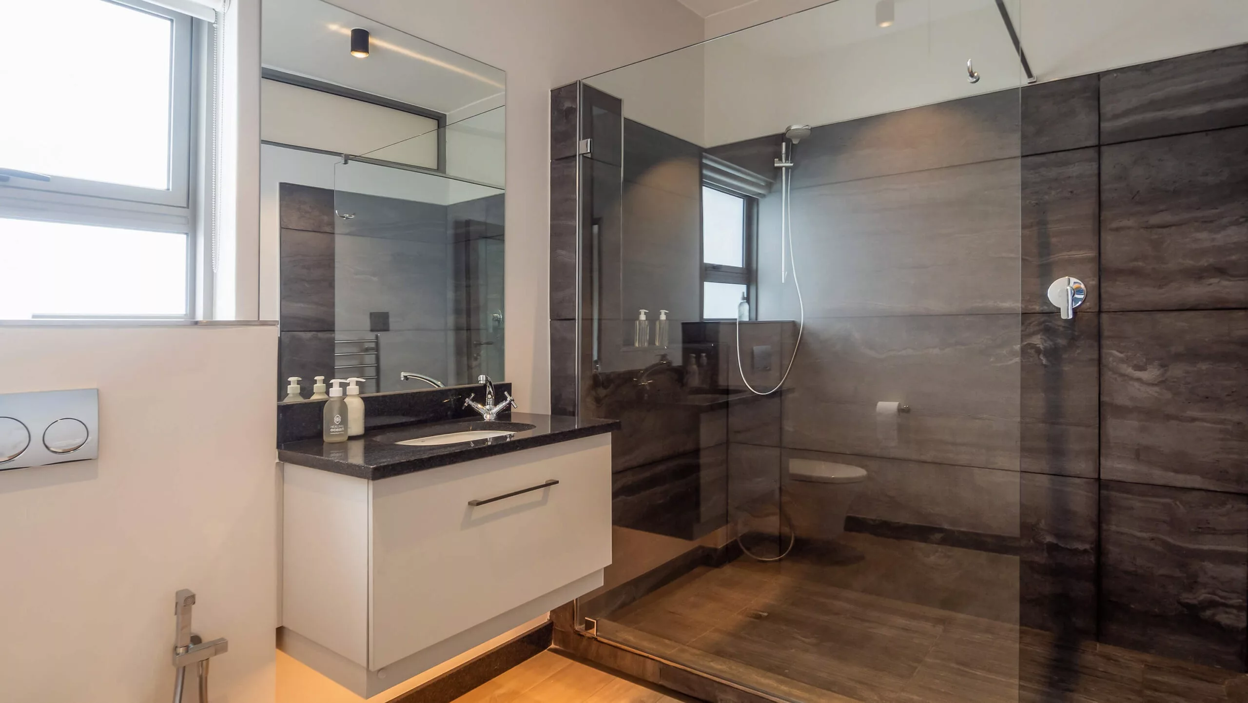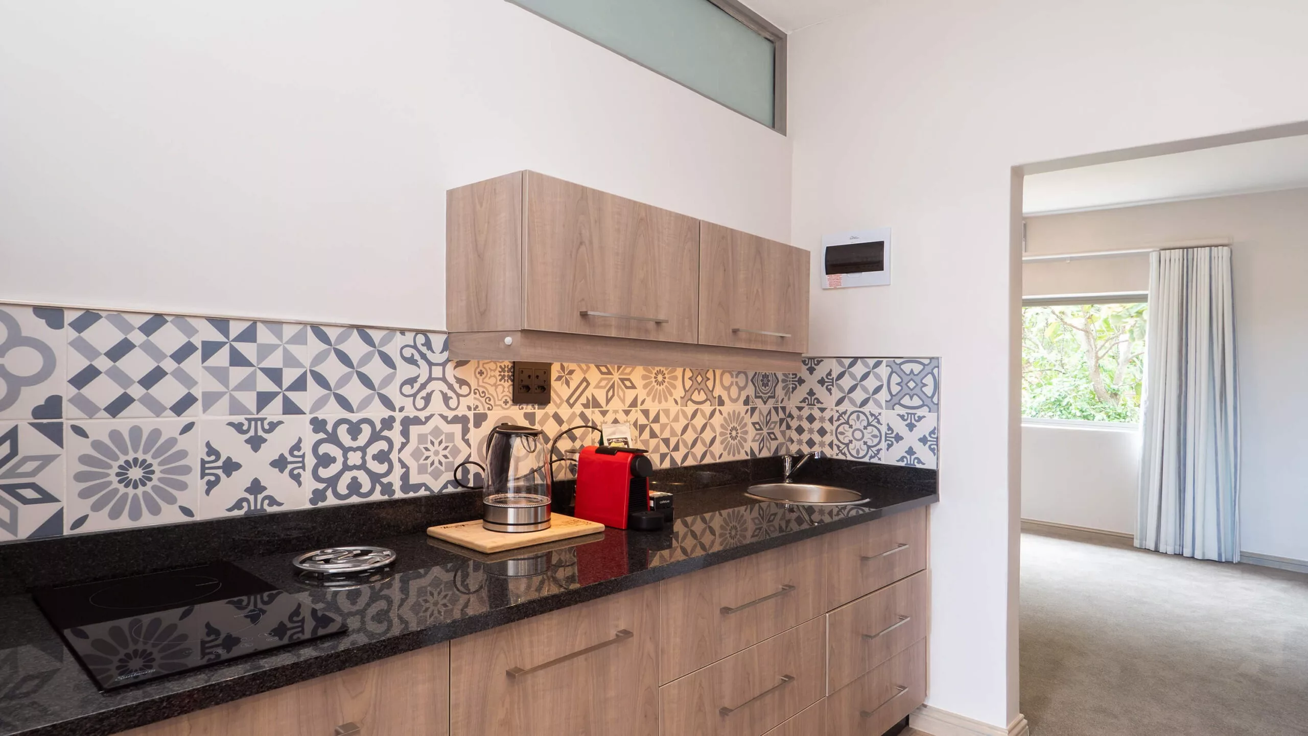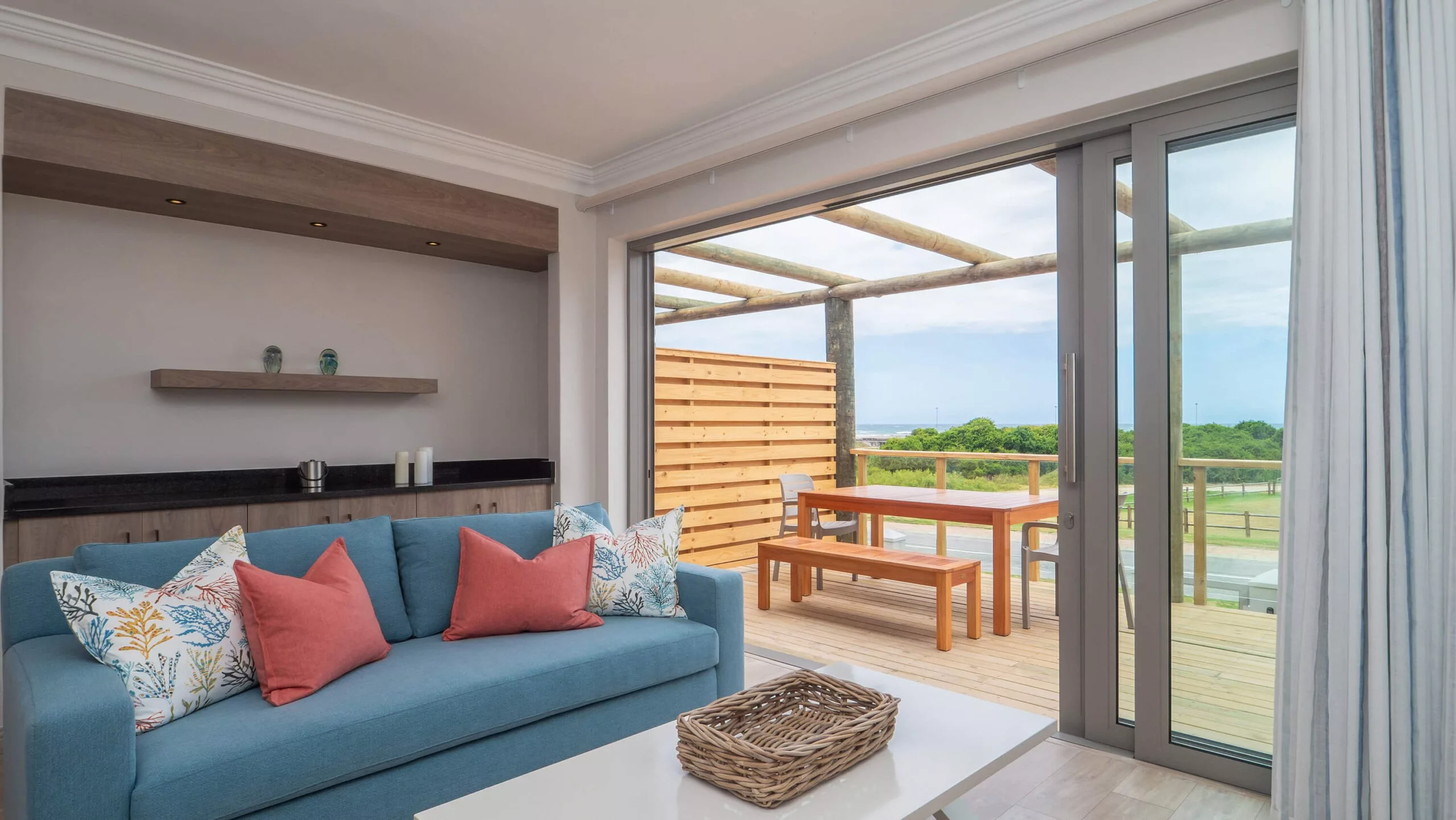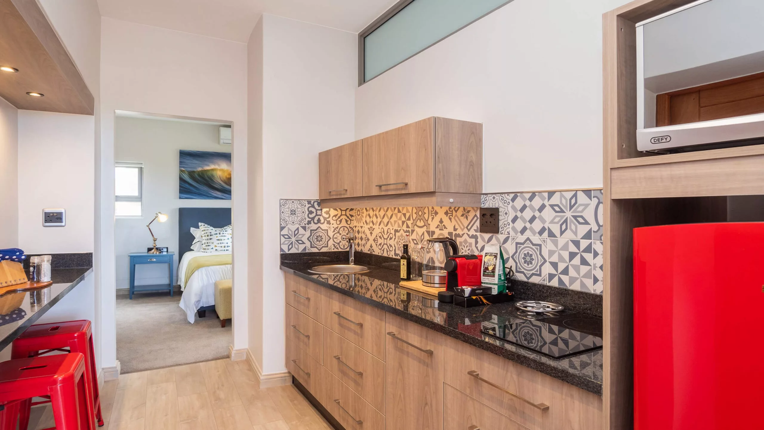 Our suites are elegant yet comfortable, reflecting the tranquillity of the Indian Ocean and Touws River estuary, all just a short walk from the property. The charming village centre of Wilderness is also easily accessible on foot, offering a variety of restaurants, pubs, and unique shops to explore. You won’t need your vehicle, as secure off-street parking is provided. Upon reaching the second floor, you will be greeted by breathtaking sea views. On this large 100 sqm furnished deck, guests can enjoy time together, sipping sundowners or simply relaxing in the sunshine. Braai facilities are available in this communal area, ensuring a warm and welcoming space for all.