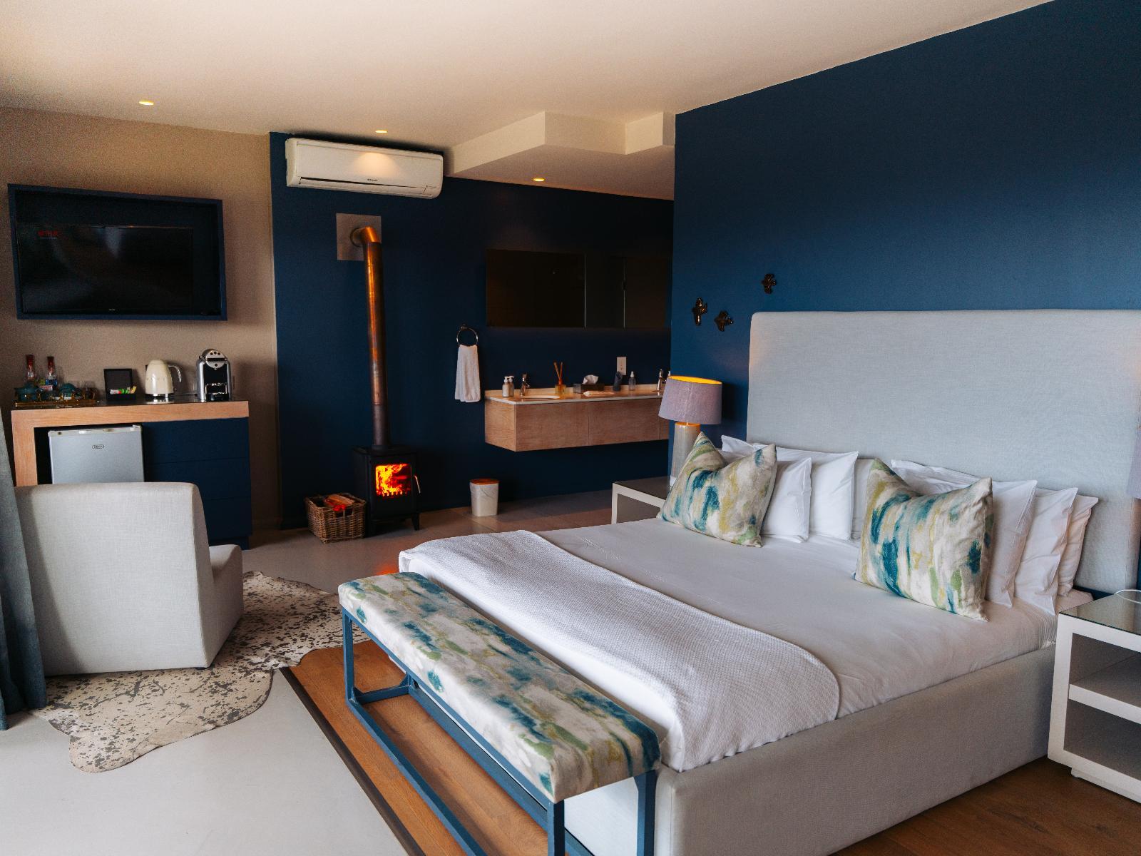 Our Honeymoon Suite boasts a King Bed and luxurious en-suite bathroom with a shower, deep soaking bathtub, a heated towel rack and underfloor heating. There is a cozy sitting area with fireplace and private terrace that opens to a breathtaking ocean view.