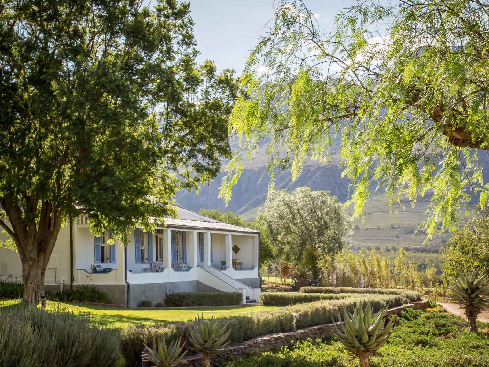 This historical dwelling is dated 1864. The original owners reportedly played host to Gen Barry Hertzog, at the time Prime Minister of the Union of South Africa, who stayed in one of the rooms in this house. It offers 4 enchanting en-suite guest rooms, overlooking a fig orchard with magnificent mountain views. Every effort has been made to retain the original “look and feel” of the farmhouse, with its “Brooky lace”, wooden floors and ceilings, adding timeless ambiance to the character of this little piece of history.