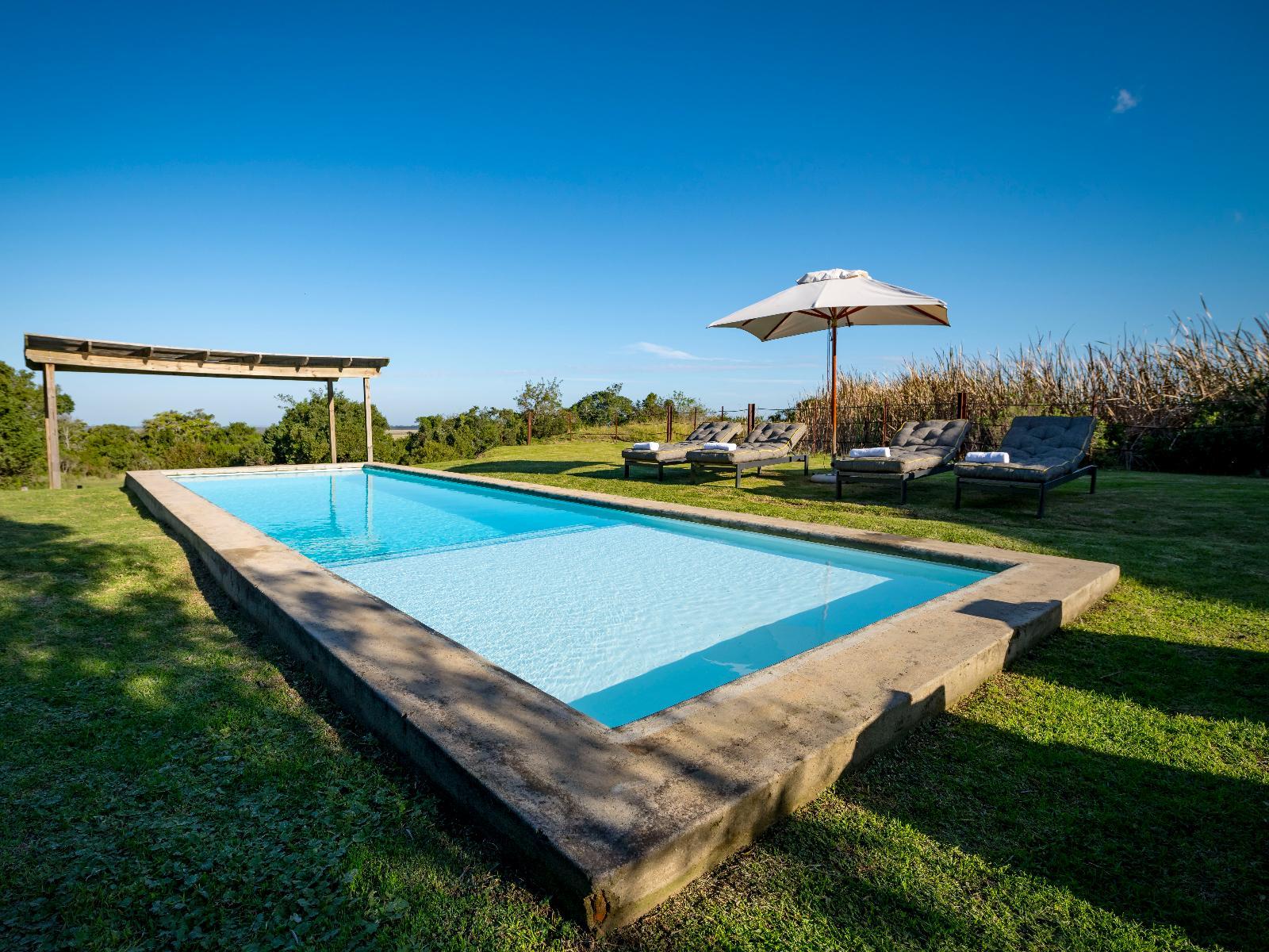 Belle Balance Bush Hideout has a lovely plunge pool, big outdoor swimming pool with lounges, comfortable sofas and chairs on the veranda, an attractive lounge and beautiful farmhouse dining room, there are fireplaces everywhere to ensure a cozy environment where guests can sink into a plush chair and relax.