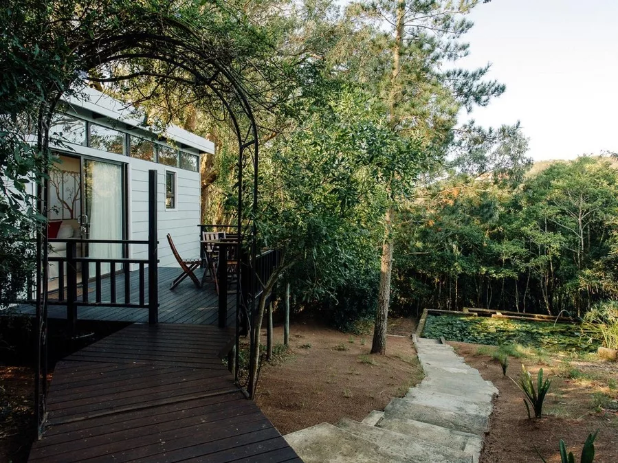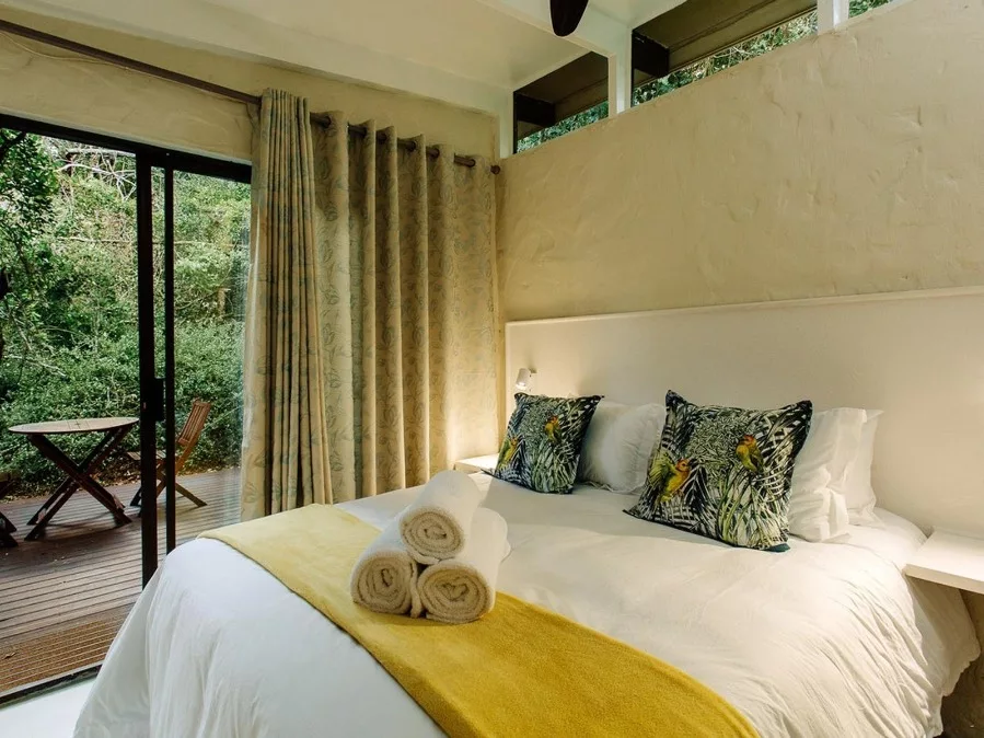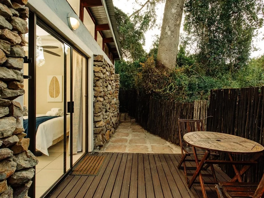 Our three forest rooms are nestled amongst a thriving array of trees and bird life. Each room boasts its own private deck, en-suite bathroom, and serene living space. The rooms are equipped with a kettle (complementary tea, coffee, sugar, milk and rusks), a mini-fridge, DStv and fresh linen & towels.
