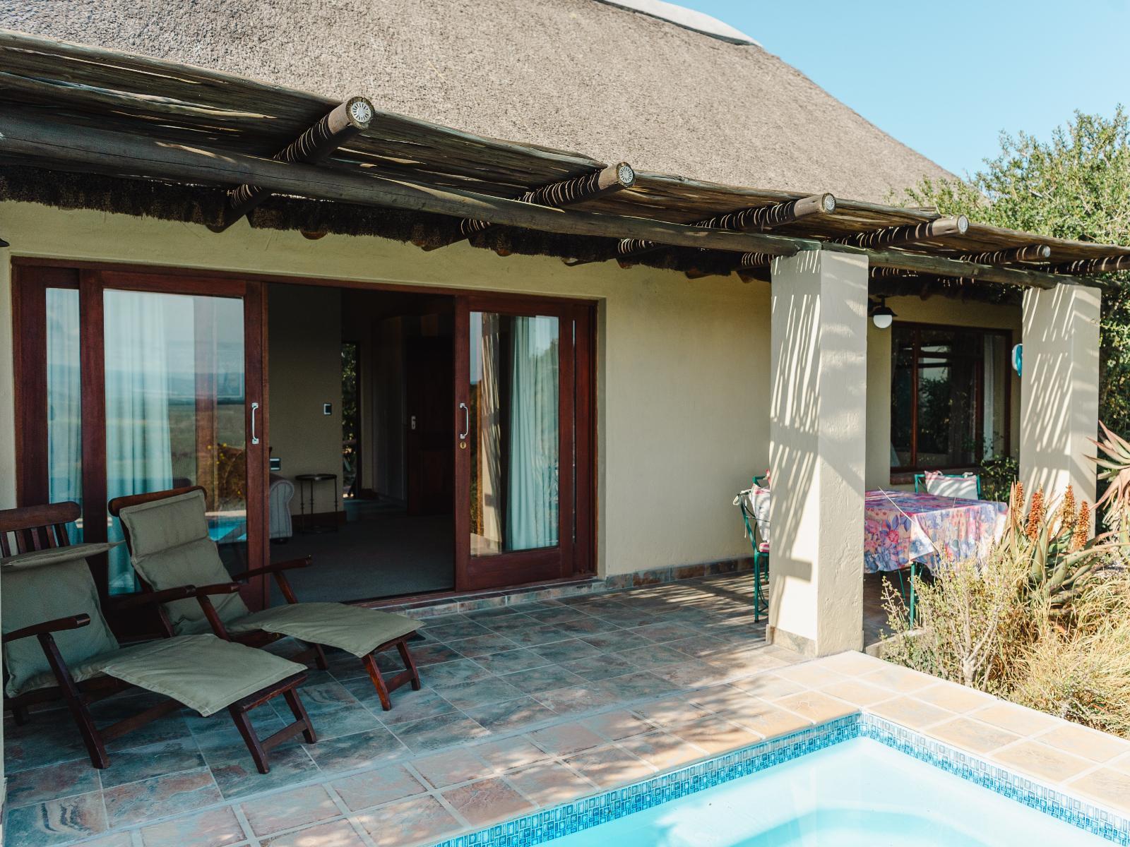 Hitgeheim Country Lodge is situated on an eco-reserve in the heart of the malaria-free Sundays River Valley, only minutes from the Addo Elephant National Park. On arrival, you are warmly welcomed into this place of peace and tranquillity. The stylishly appointed chalets offer extra-length beds draped in romantic mosquito nets (not included in Luxury Family Rooms) with crisp white percale linen. Luxurious bathrooms, outdoor showers and private wooden decks with breathtaking views invite you to relax and unwind completely. Awake to the haunting cries of the fish-eagles, residents of the Sundays River below the veranda of your chalet