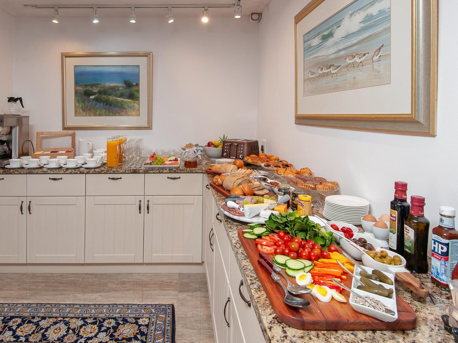 Guests at Villa Venusta can enjoy a varied breakfast buffet in the communal dining area or outside on the patio.