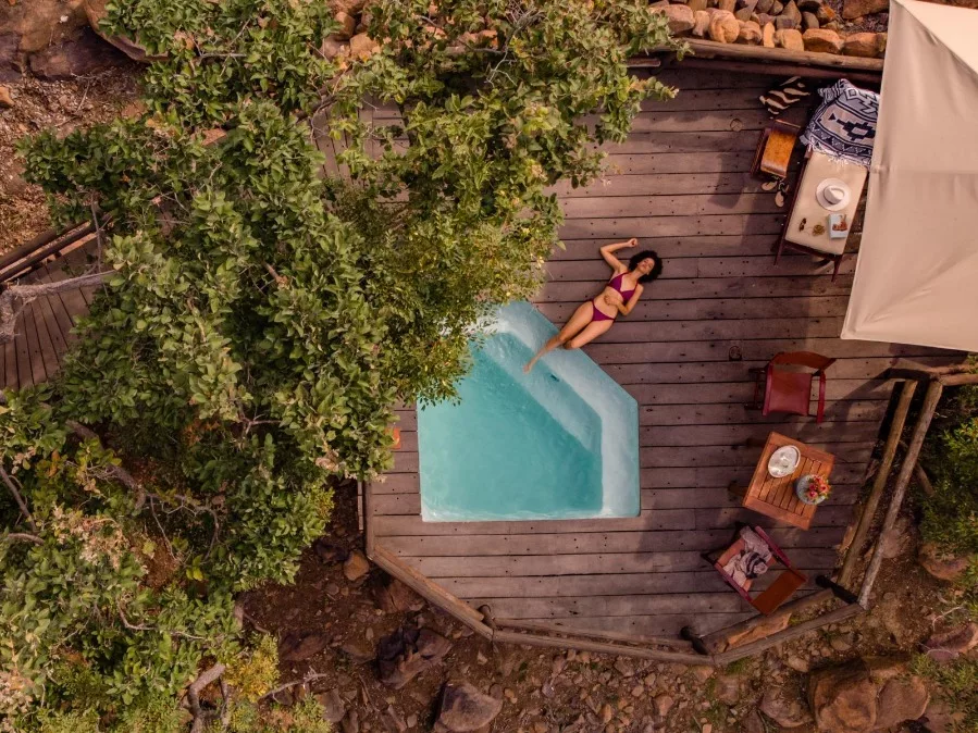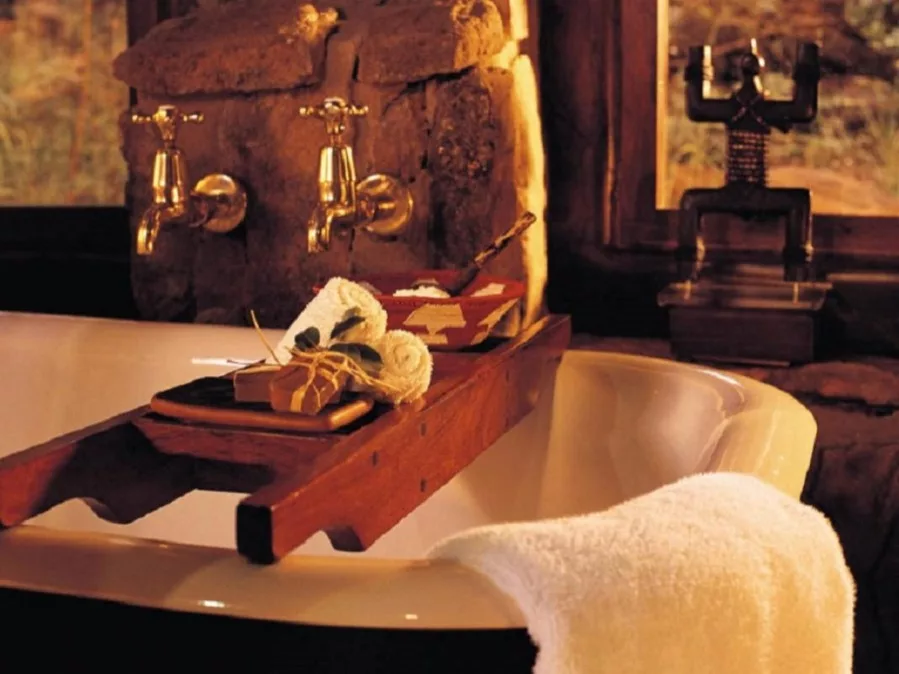 Air-conditioned suites, built from African stone and thatch, are dotted around the main lodge, accessible by winding pathways through the natural bushveld. Each suite accommodates 2 people with an expansive, private deck and plunge pool. Wi-fi in room