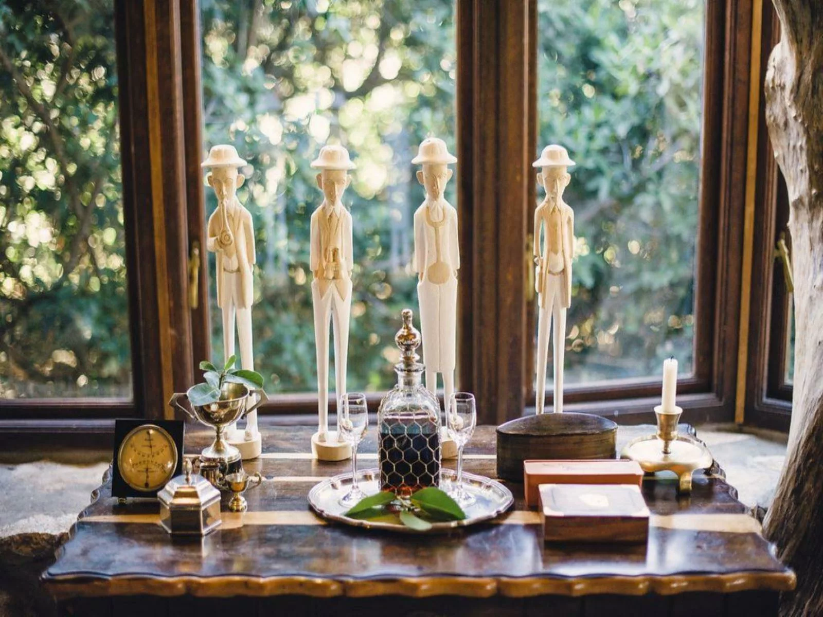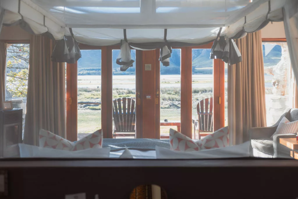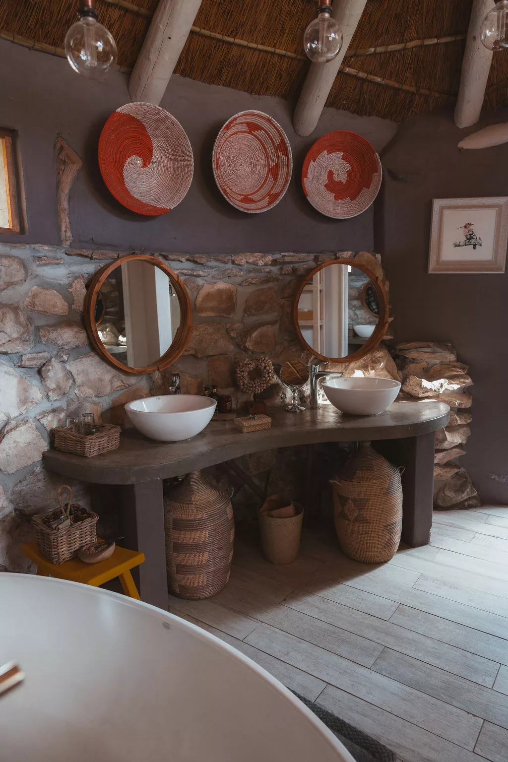 Secluded within an ancient Milkwood grove, each suite has glass walls and doors that open onto gorgeous mountain views, and a private deck overlooking the lagoon. Each room has beautiful soft netting surrounding a king-size bed, a writing desk, fireplace and a ceiling fan. The bathrooms are fitted with a large romantic tub, copper sinks and a private outdoor shower for an African bush experience. Twin beds can be accommodated.