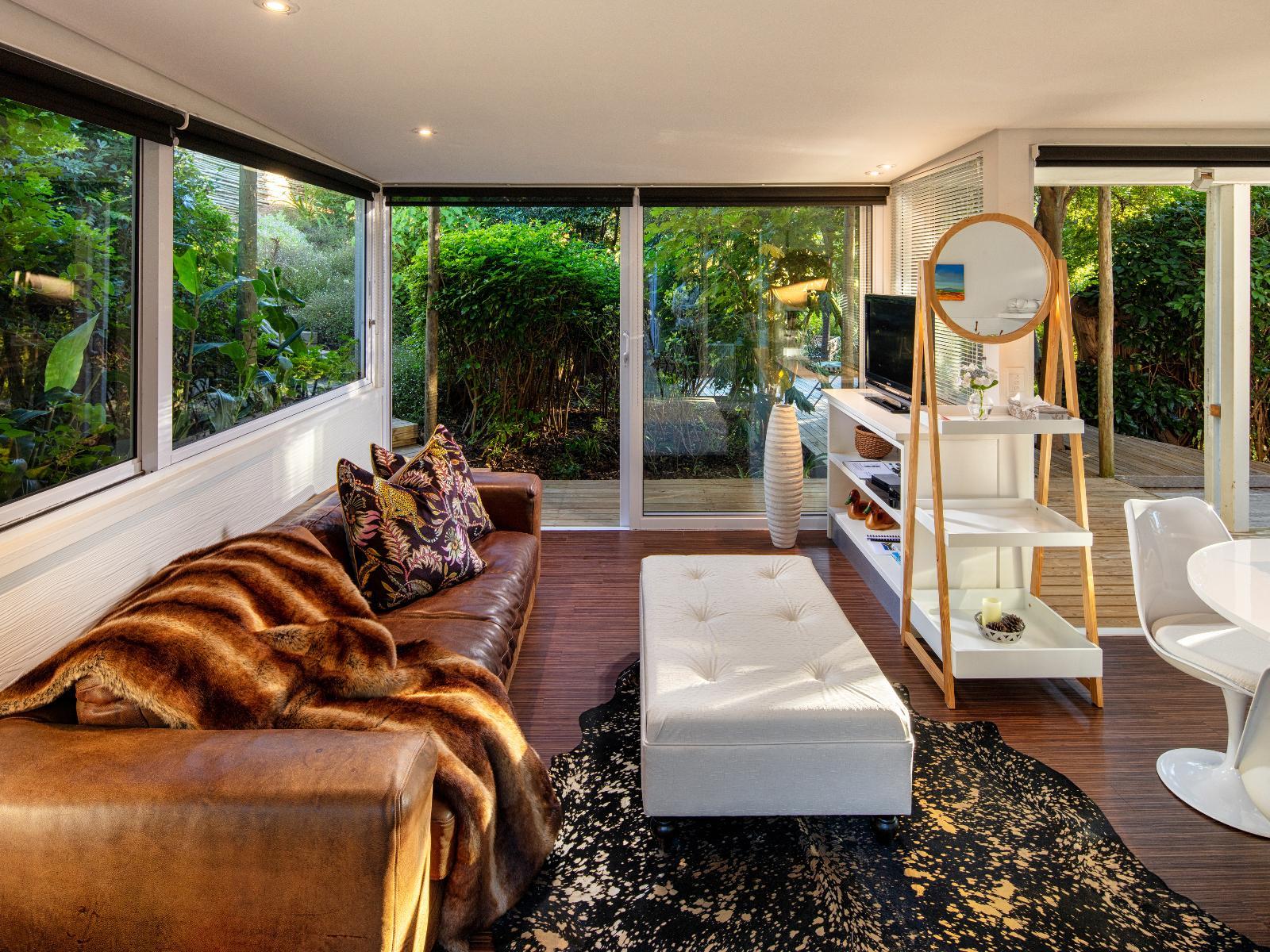The cottage is equipped with a compact kitchenette and a bathroom that comprises a shower exclusively. It also boasts a private hot tub/deck that can be reserved as an additional amenity.