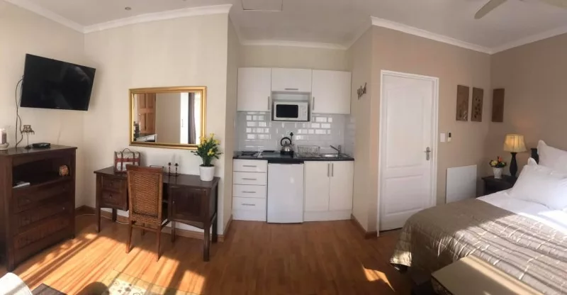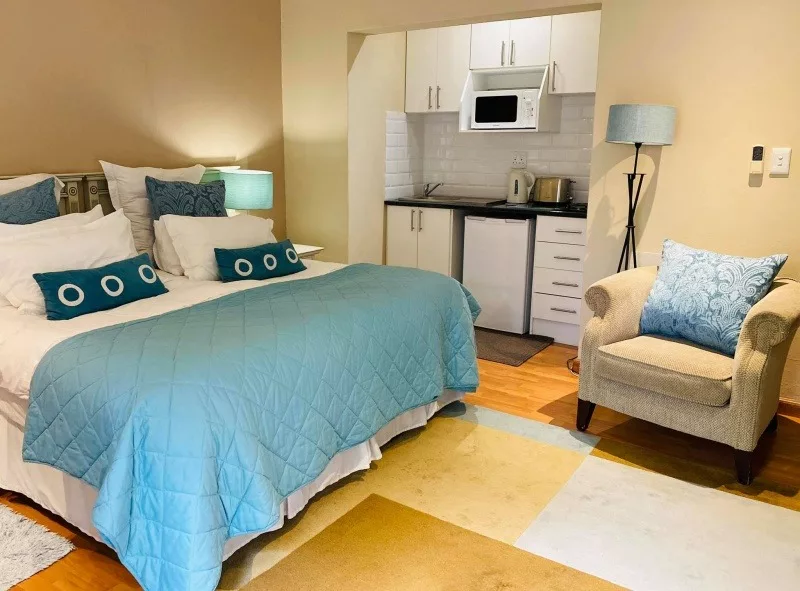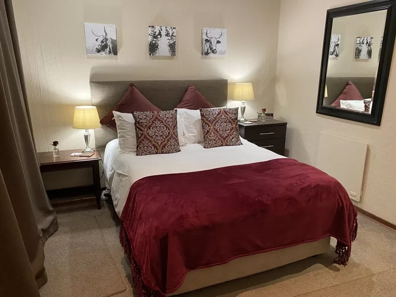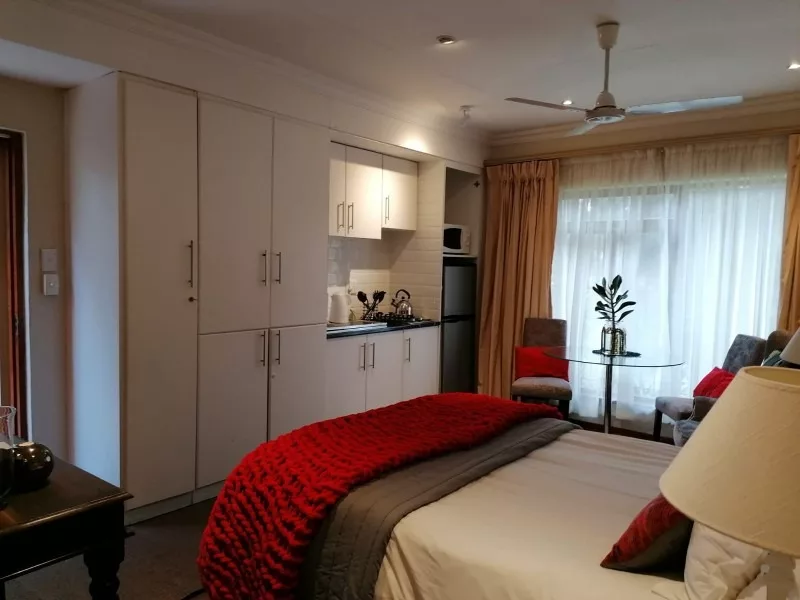 Our luxurious rooms, each with their own private entrance, exude a modern, contemporary feel. All rooms are en-suite and feature showers, while the King Rooms offer both a separate bath and shower. For your convenience, complimentary Wi-Fi, DStv, a fridge, microwave, hairdryer, and a hospitality tray are provided. Our self-catering rooms include a kitchenette equipped with a fridge, sink, and two-plate gas hob. For late arrivals, we provide a key box. Our property is powered by solar energy with a backup water supply, and we offer secure on-site parking to ensure a seamless stay.