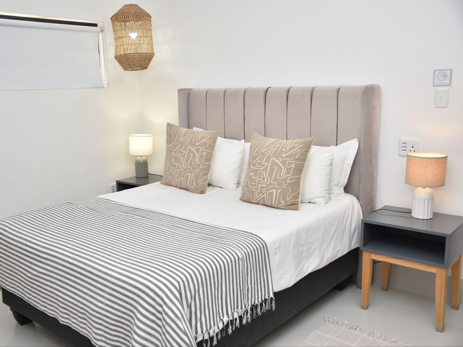 Accommodation comprises Luxury Villas, Standard Double Rooms, Comfort Family Units, One-Bedroom Family Unit and a Two-Bedroom Family Apartment. Each option features a private bathroom and contains amenities such as air-conditioning, TV with selected DStv channels, small dining table/desk, tea- and coffee-making facilities, safety deposit boxes. The Self-Catering Villas, Standard Double Rooms, Comfort Family Units offer heat-and-eat appliances such as a microwave and a bar fridge. The Two Bedroom Family Unit can accommodate 4 adults or 3 adults and 1 child & features 2 separate bedrooms and 2 bathrooms.