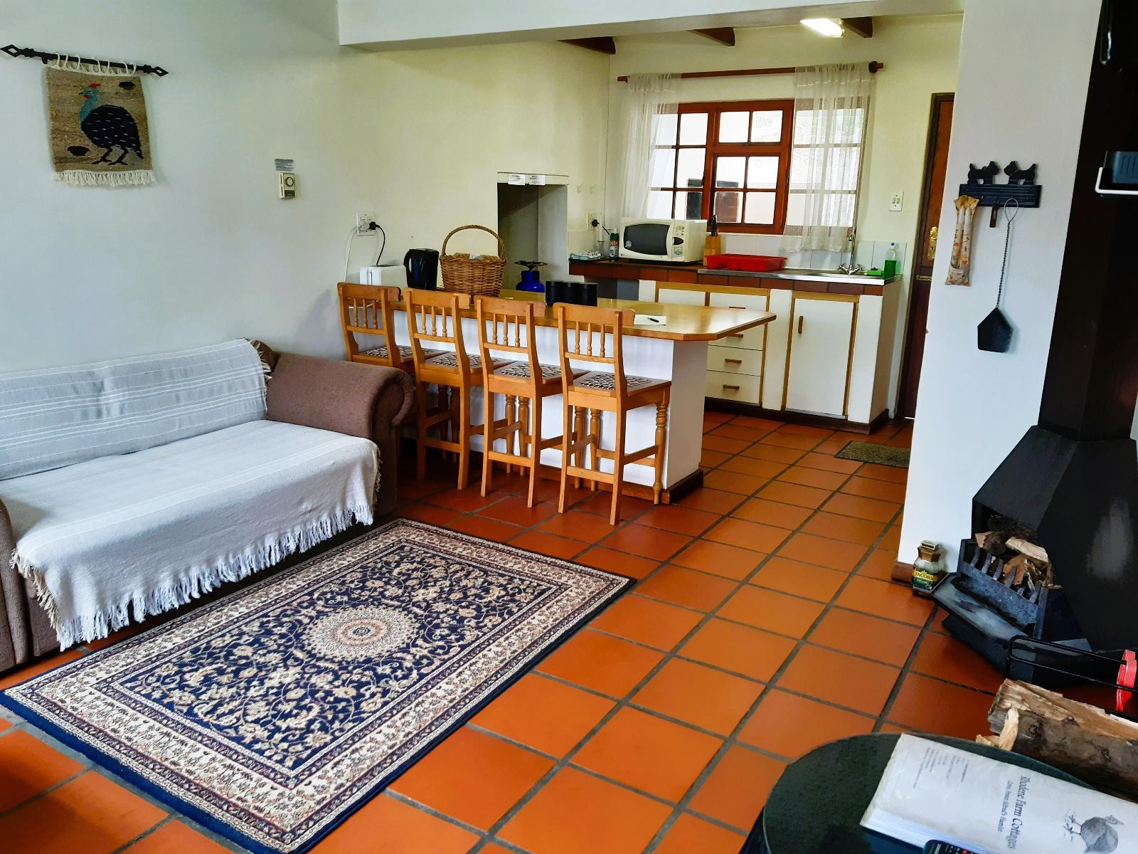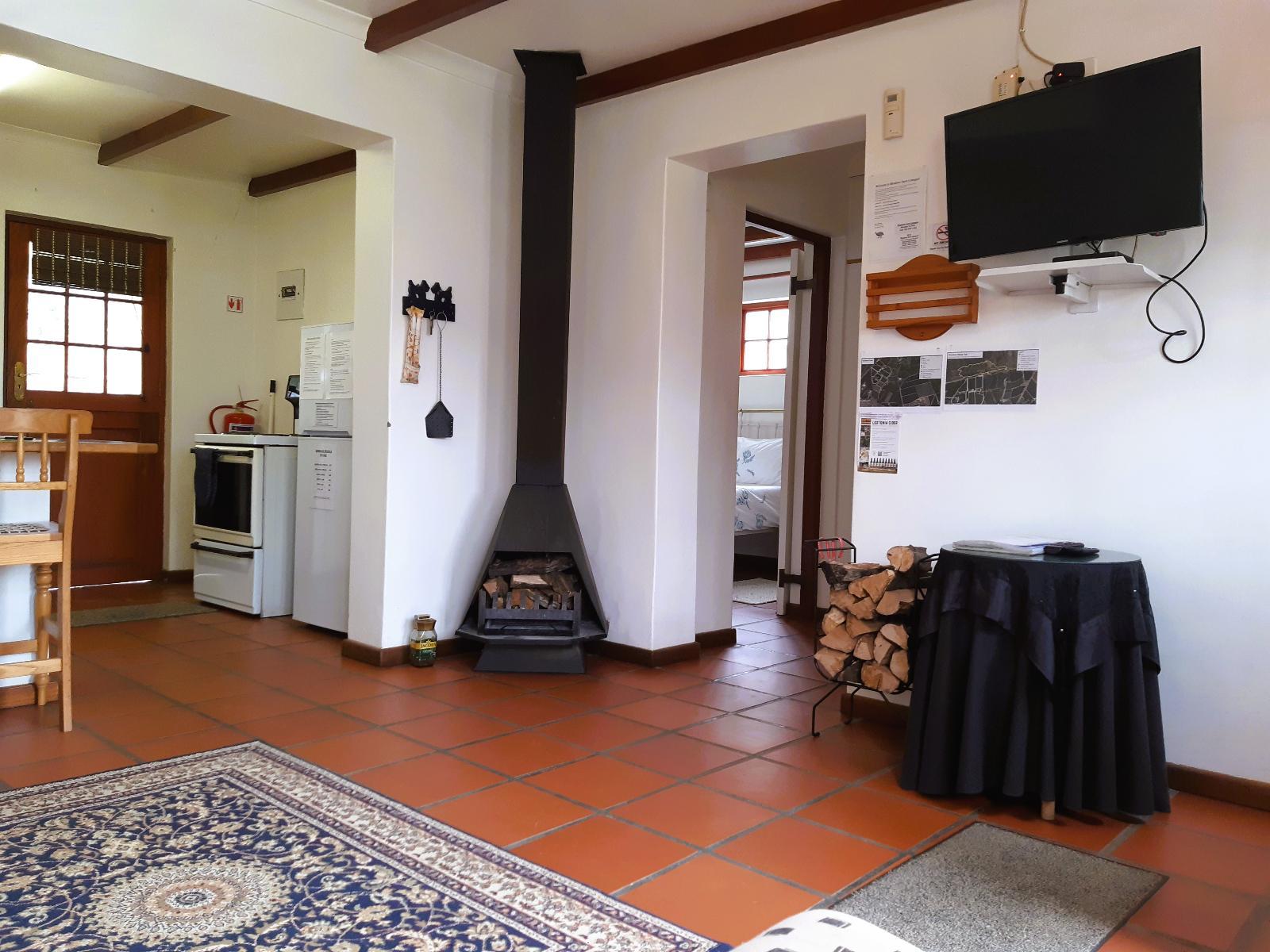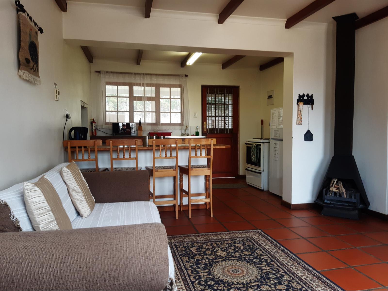 2 bedroom cottage: 1 room with double bed and 2nd room with 2 bunk-beds (only children sleep on top bunk beds). Bathroom with shower, toilet and small bath for children. Fully equipped kitchen. Lounge with fireplace. Undercover stoep with braai area.