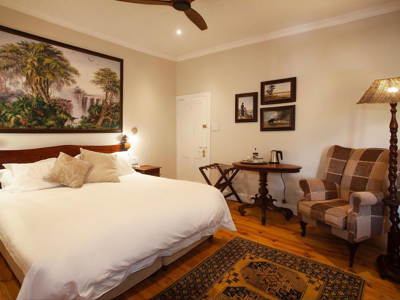All 15 rooms are individual in character and are a great reflection of the owner and decorator Sue Melvills vision for what a classic Karoo bedroom should be; to me, the karoo is all about stillness, honesty, and serenity. And thats what I want in our bedrooms. Along with beautiful fabrics, finishes, and unexpected details, lavender sachets, real coffee, proper teapots, and sherry out of a vintage crystal glass before bedtime. There are 3 different room categories: Klein Karoo Rooms, Groot Karoo Rooms, and the spacious Garden Suite.