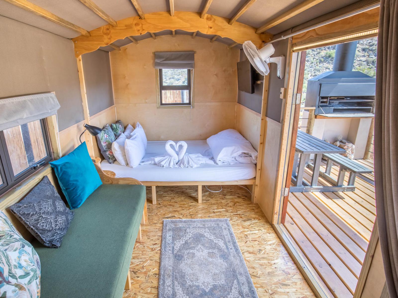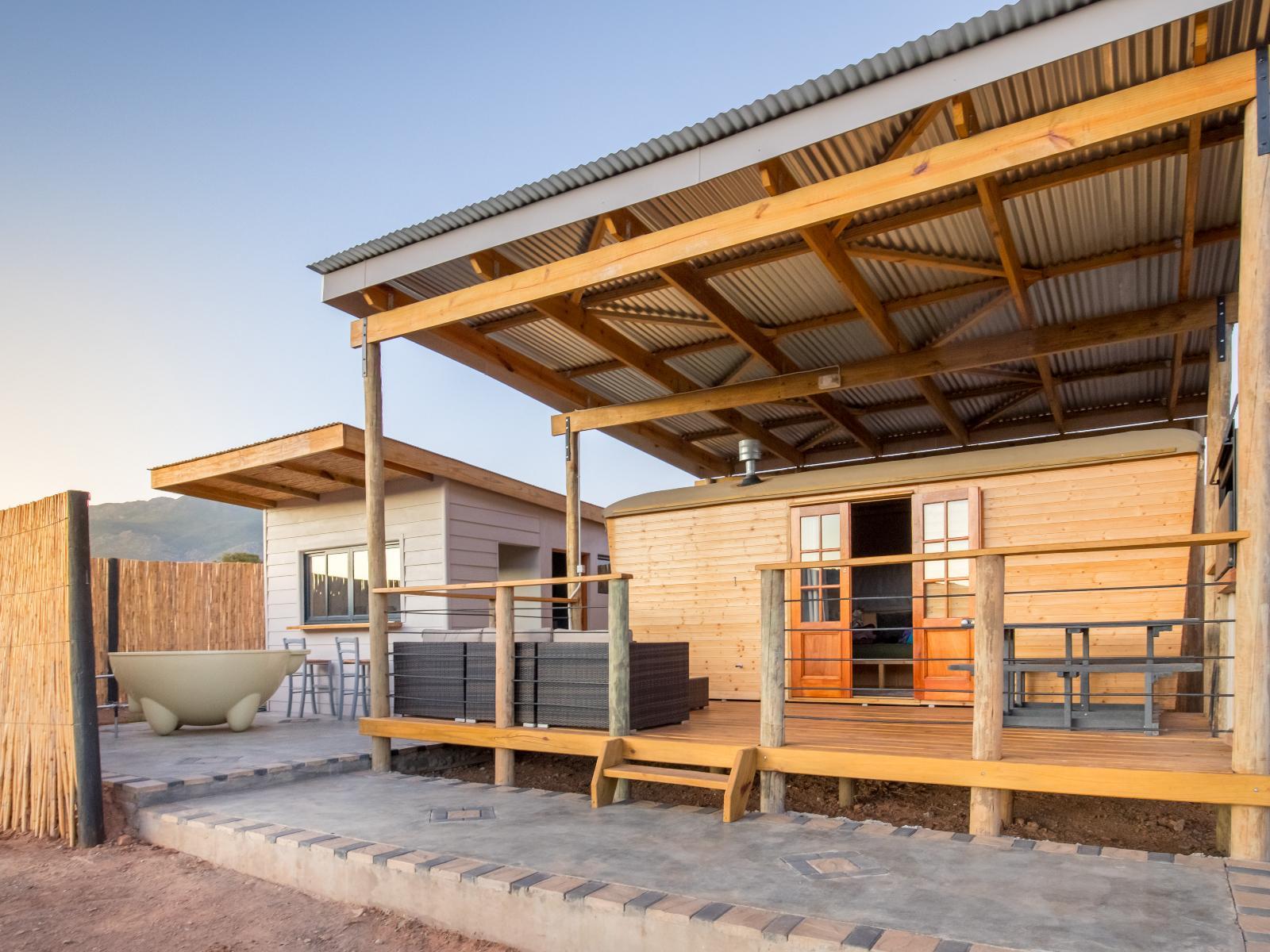 Glen Eden Farm is a small holding of 50 hectares 14km outside of the historic town of Montagu. There are 5 luxury cottages & 3 unique glamping options with 6 sites in total (glamorous camping). All cottages have private gardens with dining furniture, braai, & splash pool & a wood fired hot tub along with everything needed for a self-catering break. The glamping sites offer unique accommodation experiences. There are 2 glamping pods with shepherds wagon sleeping 4 people, 3 glamping pods each have with a hand-made Gypsy wagon and Bell Ten. All these sites have a private bathroom and kitchen, braai, fire pit & hot tub. We have a small upmarket camping site with 6 sites, there is our one glamping site situated at the camp site which has 2micro-bedrooms. This site shares the ablutions with the camping site but has a private kitchen, all camping sites and this site have wood fired hot tubs., Both groups and pets are welcome