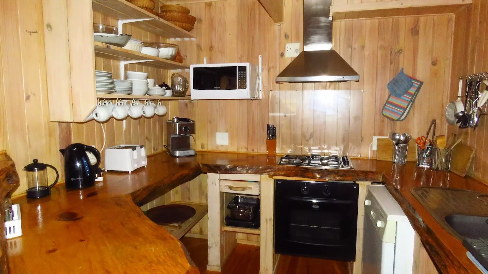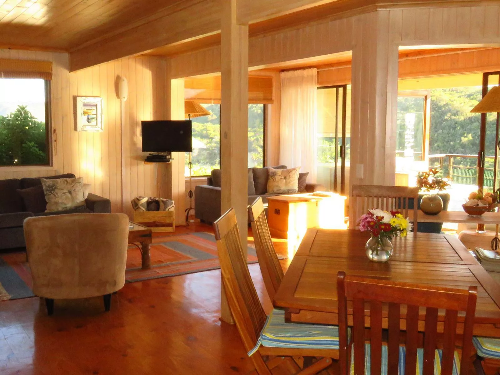 This retreat boasts a fully equipped kitchen with modern amenities such as a dishwasher and oven. The dining area, capable of seating 10 guests, is perfect for shared meals. Thoughtful additions like warm blankets, fresh flowers, and complimentary refreshments enhance the guest experience.