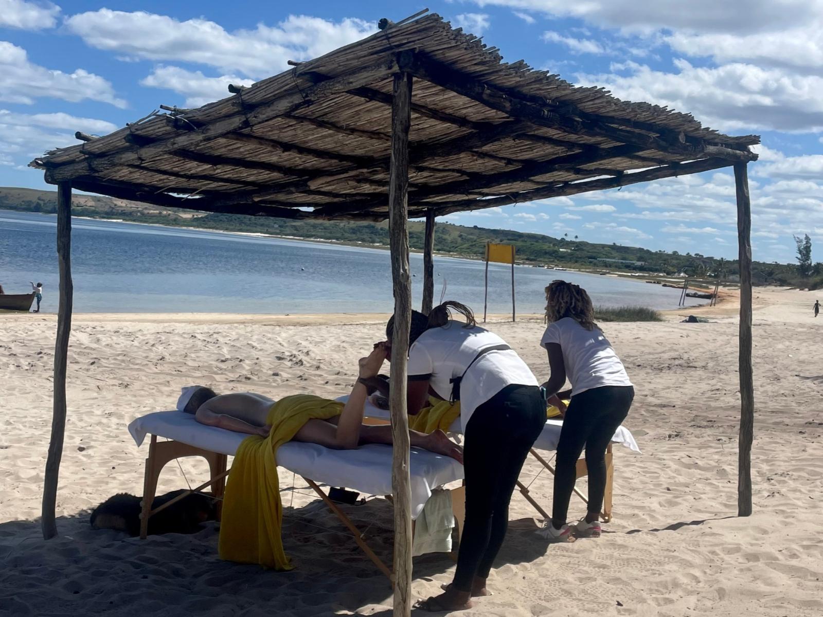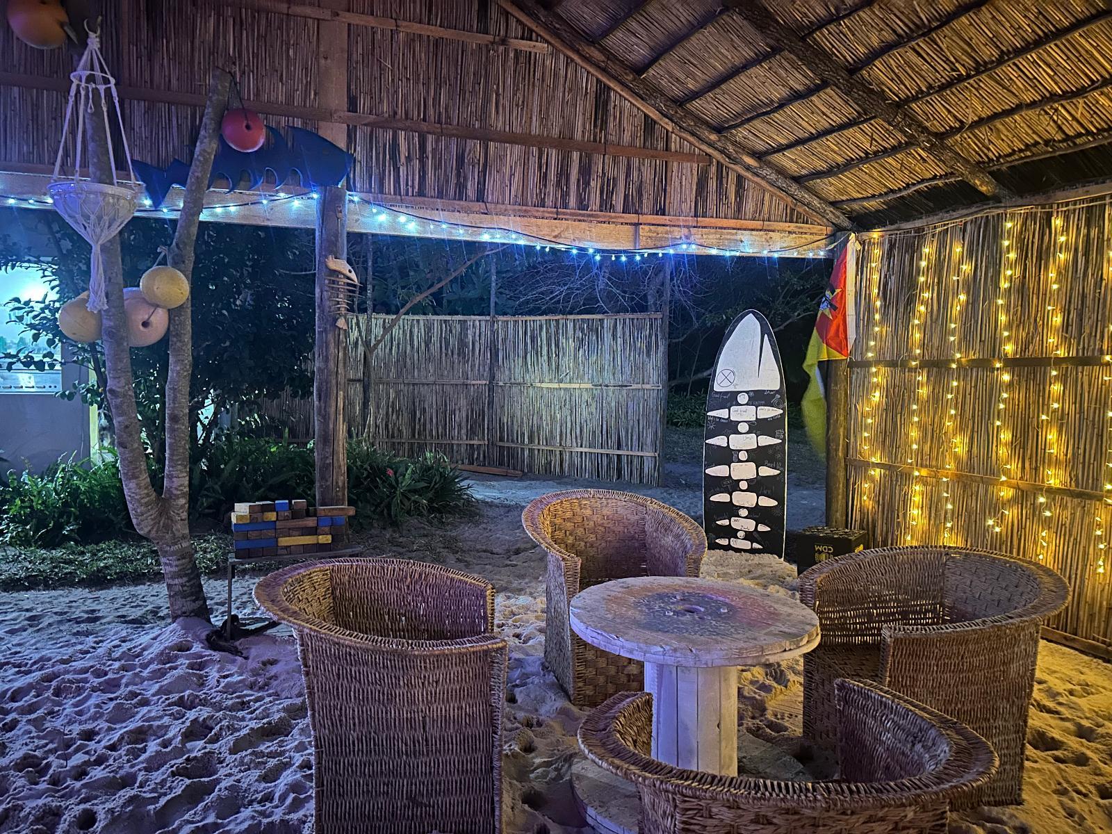 Our beautiful Luxury Safari tents are specifically designed to give you and your family a camping feeling but with style. We call it Glamping. Our kitchen is open with a gas stove and fridge/freezer. Bathroom with shower. In front is a boma braai where you can sit and watch the lagoon and the vast heaven with millions of star. Fresh Prawns and fish freshly offered everyday after the night catch. Snorkeling is also a high and water sport galore. 4×4 trips to various interesting beautiful places. Bars and restaurants just a walk on the beach away. We are situated on the beach of the San Martinho lagoon with the dune behind us hiding the vast ocean of Moz. Deep sea fishing trips and boat trips can be arranged.