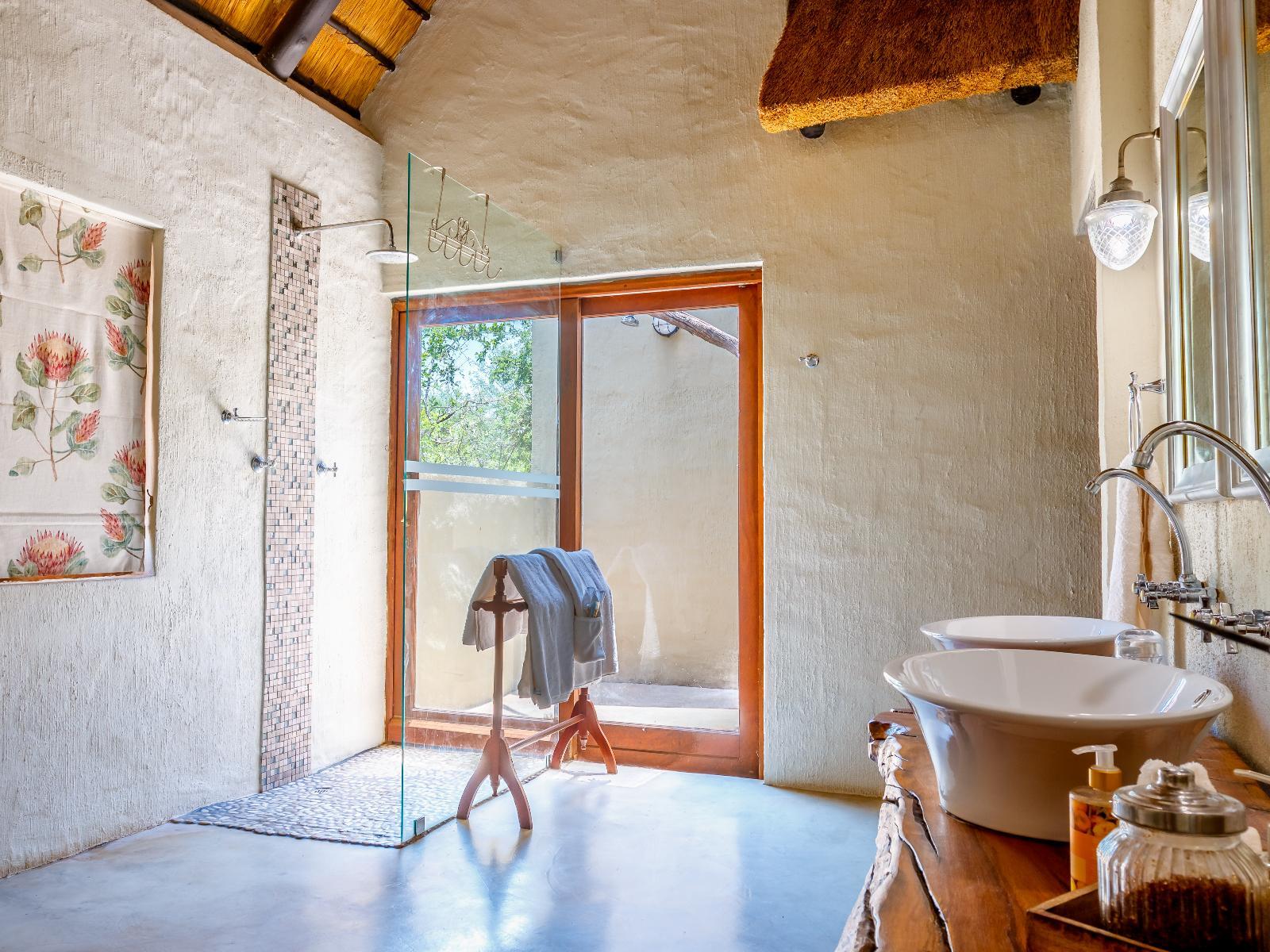 For a more budget-friendly option, consider our Pangolin Rondavels, a favourite among many of our international guests. These four traditional round thatched rooms provide a cosy and authentic experience. Two rondavels feature a “Bush Bathroom” with an outdoor shower, covered toilet, and basin, while the other two share a separate bathroom and outdoor shower. All beds are adorned with luxurious percale linen and towels are provided. Each rondavel includes a wardrobe, seating area, and tea and coffee trays. Enjoy a hearty full breakfast, with the option for half board. Wi-Fi is accessible at the main area, however, please note there are no TVs or Wi-Fi in the rooms.