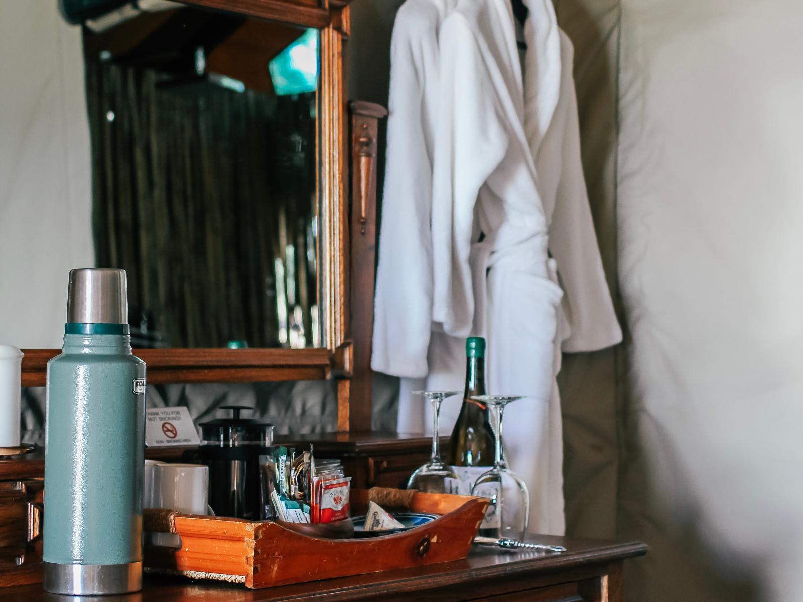 These Safari Tents are located 3.7km away from the Main Lodge with an open plan lounge and bedroom area with a comfortable couch. Private bathroom with a hot shower cabin, wash basin and flushing toilet.