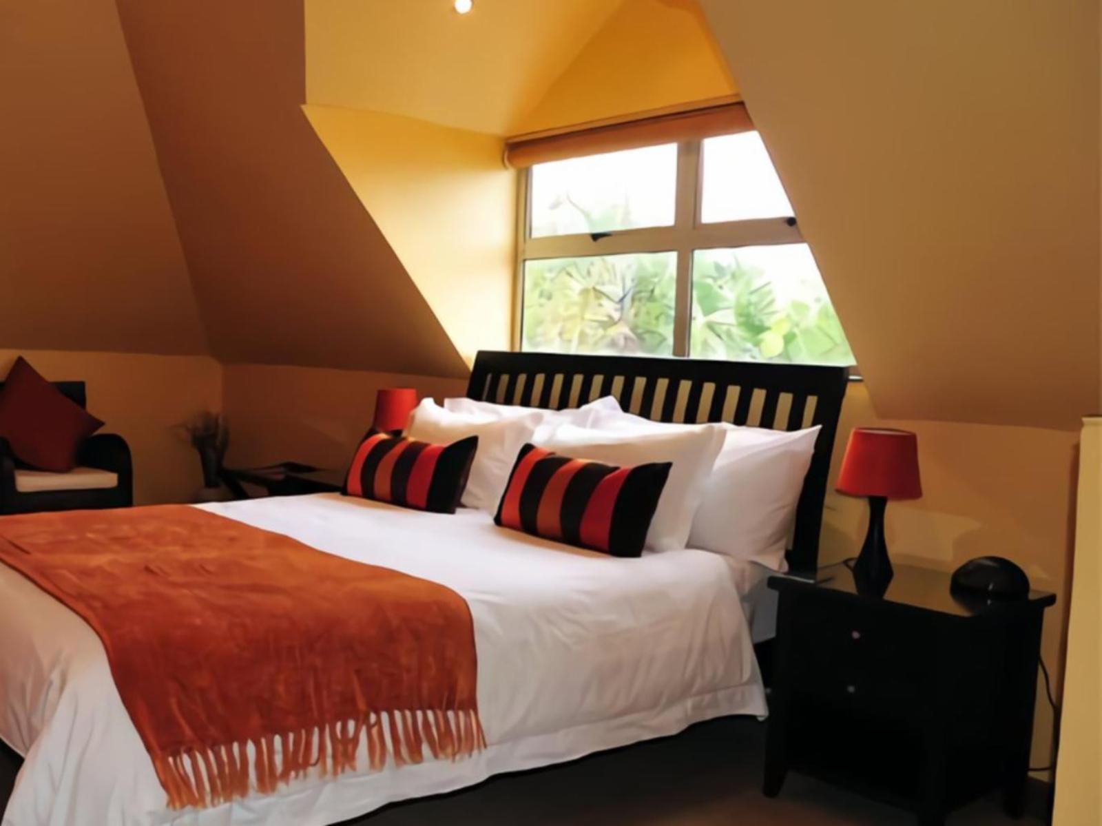 This upstairs room has an extra-length queen size bed and an en-suite bathroom fitted with a walk-in shower. This room contains air-conditioning, free Wi-Fi, coffee/tea, a TV with DStv, a safe, and other amenities.