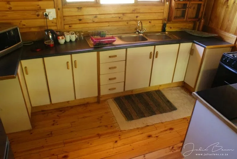 Stoffels Rus Self-Catering Log Cabin, located within the family-friendly New Holme area, can accommodate up to four guests. It features a quaint log self-catering setup with two well-appointed bedrooms: one with a double bed and another with two single beds. Each bedroom comes with an en-suite bathroom, air conditioning, and electric blankets to ensure guests’ comfort during the cold winter nights. Premium bed linen and bathroom towels add a touch of luxury to the stay.