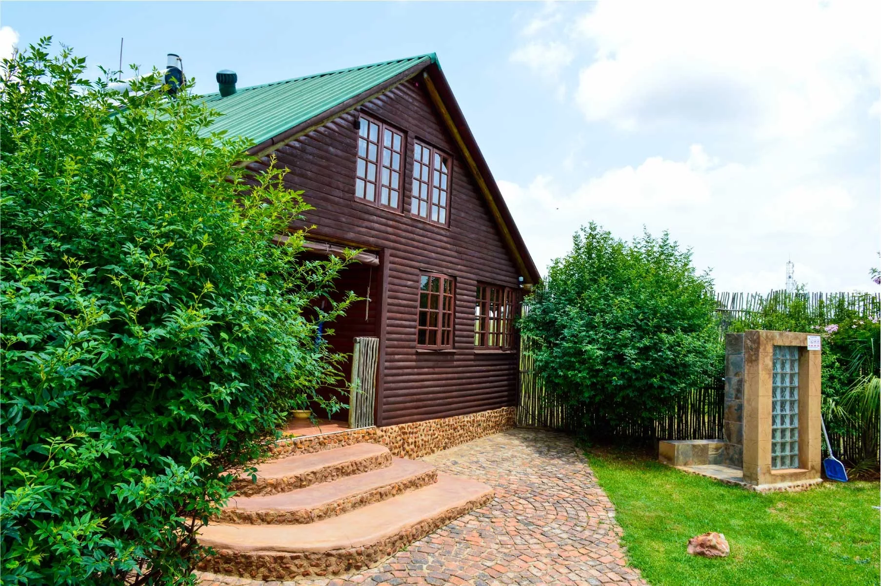 The kitchens are well-equipped with a dishwasher, microwave, full gas stove/oven, and an air fryer, ensuring you have everything you need. Each cottage is fitted with DSTV, including all sports channels, and boasts a welcoming indoor fireplace. The fenced gardens feature a private splash pool, an outdoor garden shower, and a spacious bricked braai area off the patio. Just bring along your food and personal toiletries.