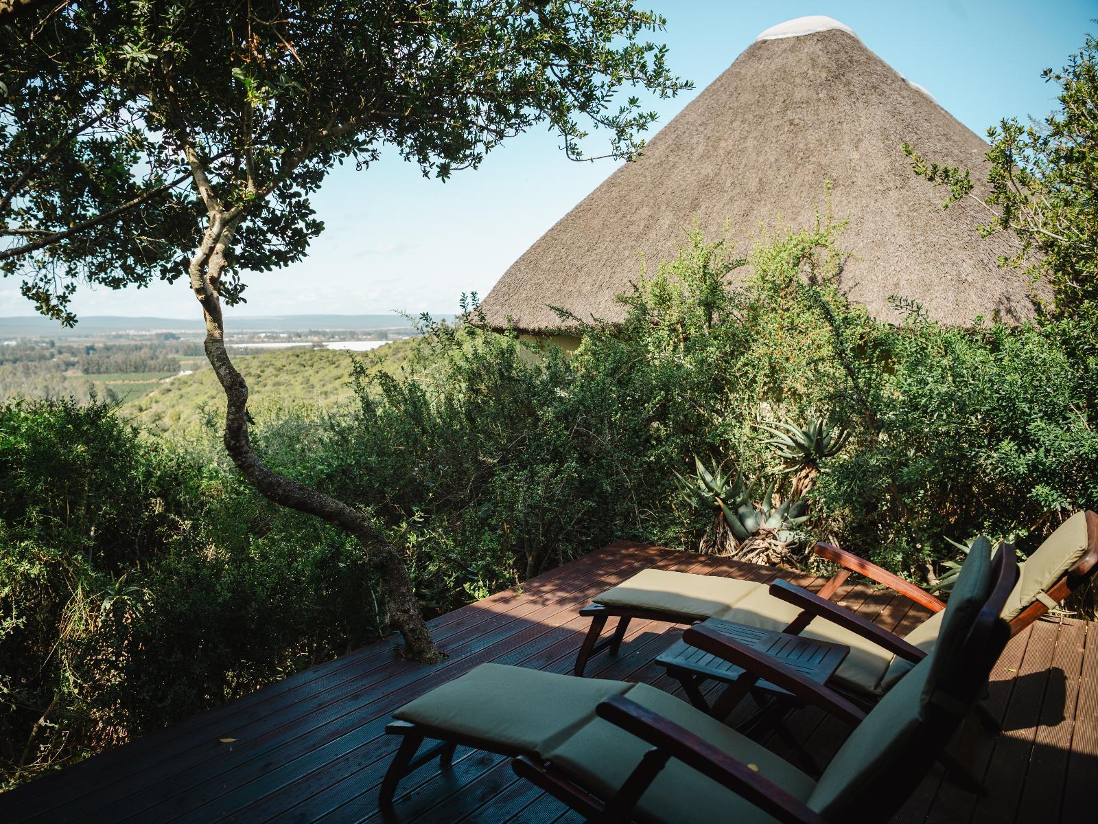 Hitgeheim Country Lodge is situated on an eco-reserve in the heart of the malaria-free Sundays River Valley, only minutes from the Addo Elephant National Park. On arrival, you are warmly welcomed into this place of peace and tranquillity. The stylishly appointed chalets offer extra-length beds draped in romantic mosquito nets (not included in Luxury Family Rooms) with crisp white percale linen. Luxurious bathrooms, outdoor showers and private wooden decks with breathtaking views invite you to relax and unwind completely. Awake to the haunting cries of the fish-eagles, residents of the Sundays River below the veranda of your chalet