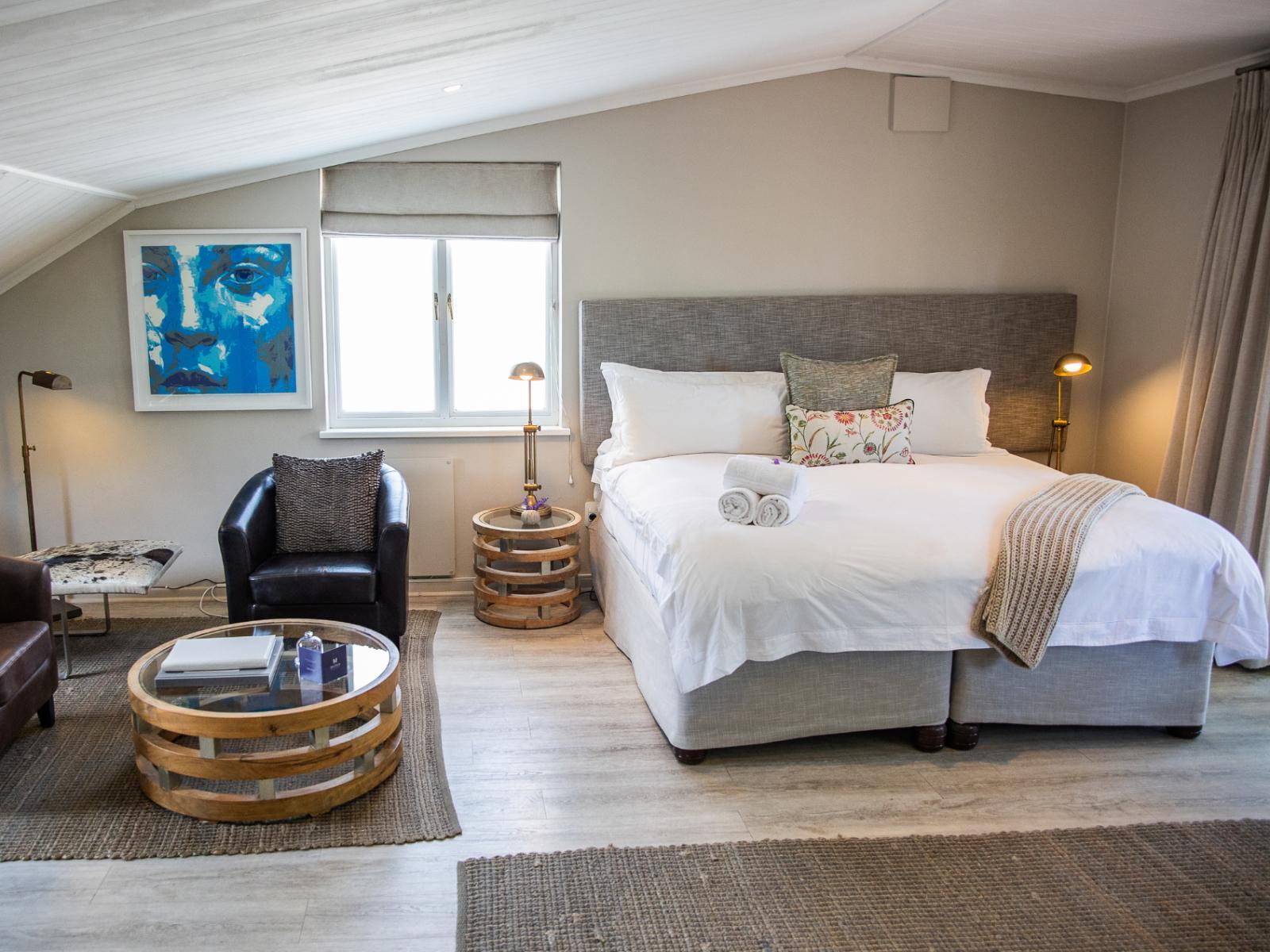 Superior king bed en-suite loft room with views. Bath and shower, WiFi, air conditioning, complimentary coffee and tea, satellite TV, room safe, laundry services, breakfast (packed breakfast optional), mini fridge, bathroom toiletries and bathrobe.