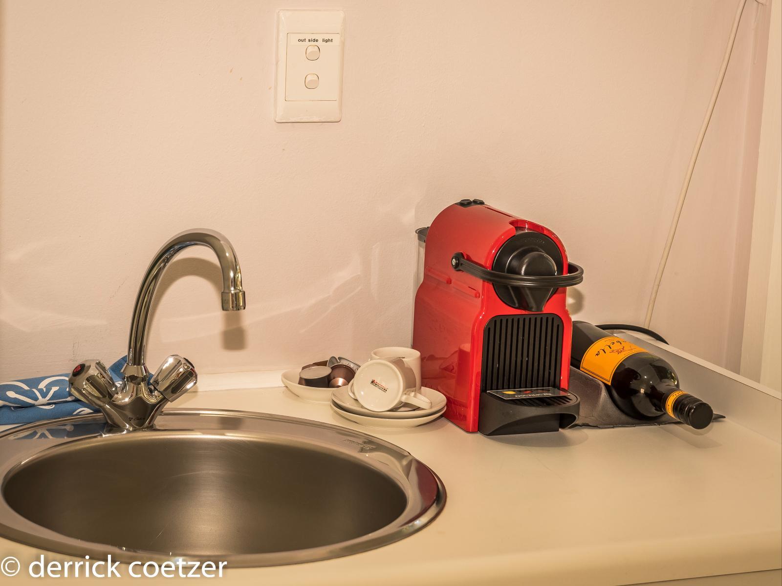 Air-conditioning. 26″ flat screen TV, Free Wi-Fi, safe. Nespresso machine, fridge, basin, kettle.