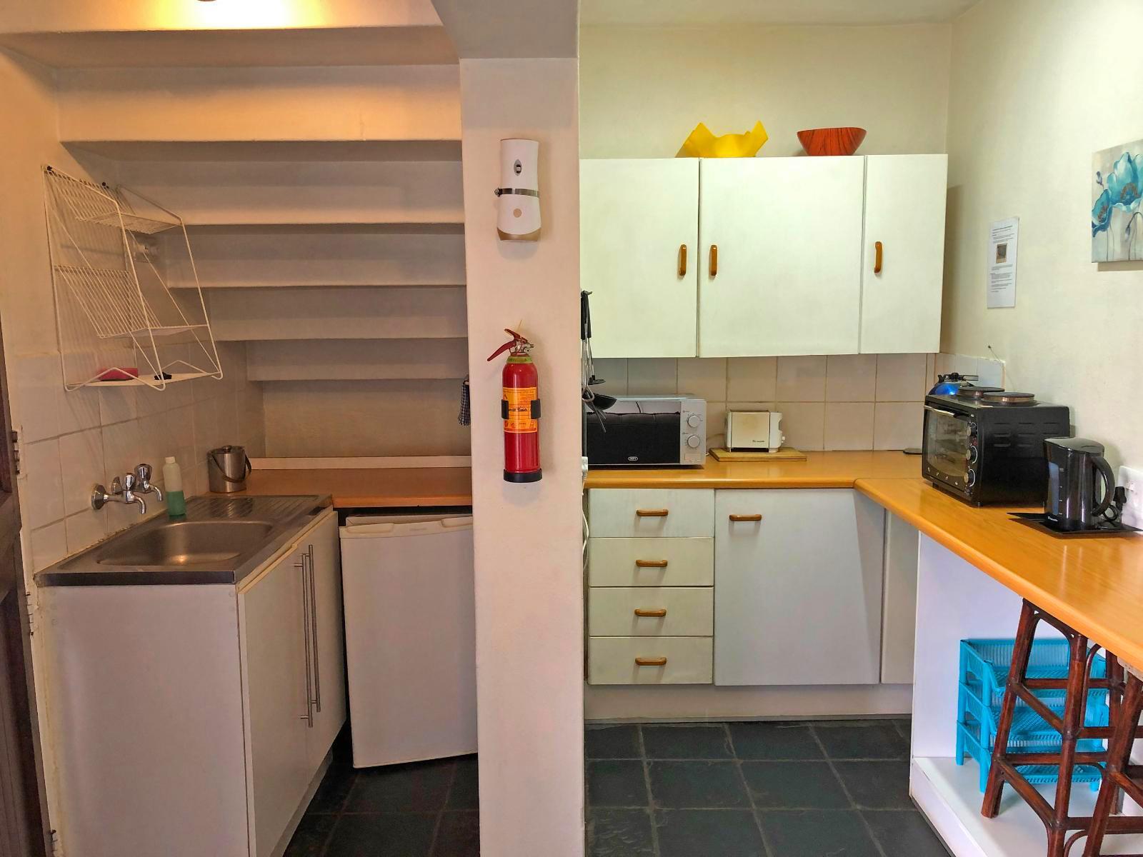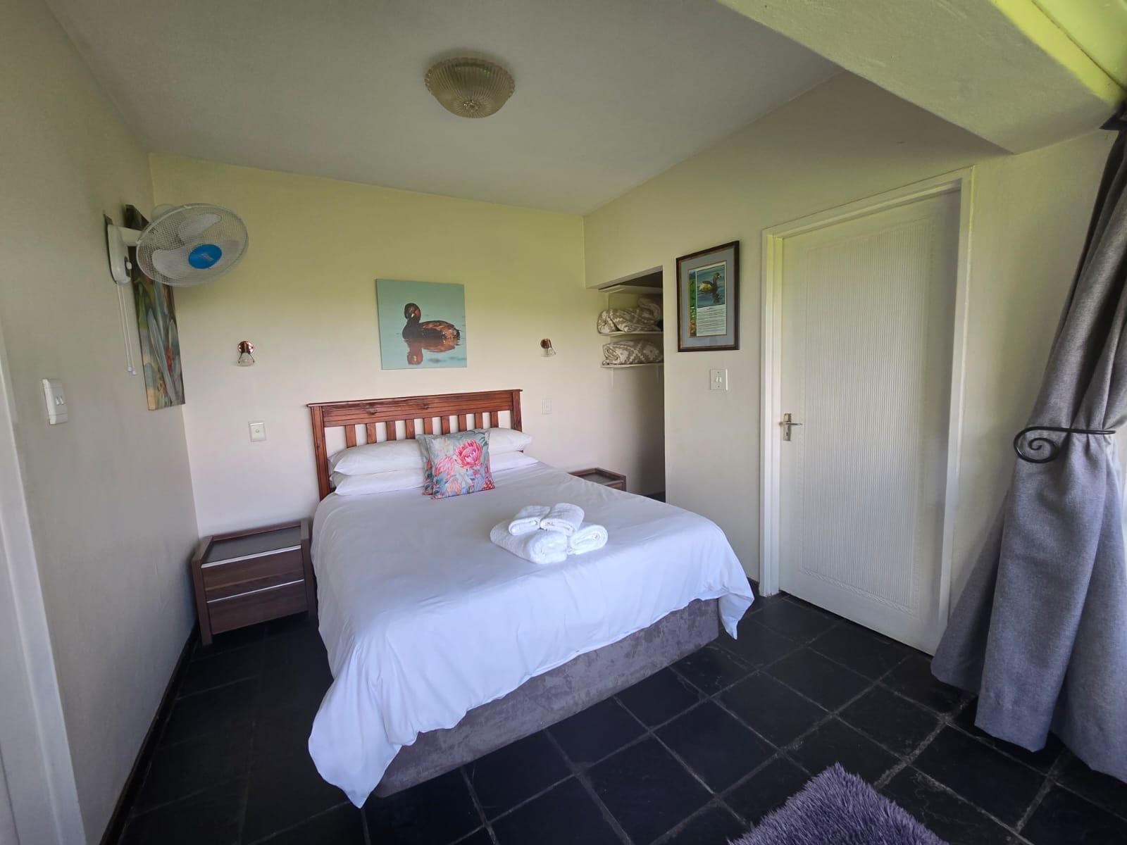 One-bedroom unit with bay window overlooking the river. Queen-size bed, shower and toilet, fully stocked kitchenette with small dining/lounge area with fireplace, little patio with brazier/braai. Garage leads into the kitchen. Wifi, coffee & tea tray.