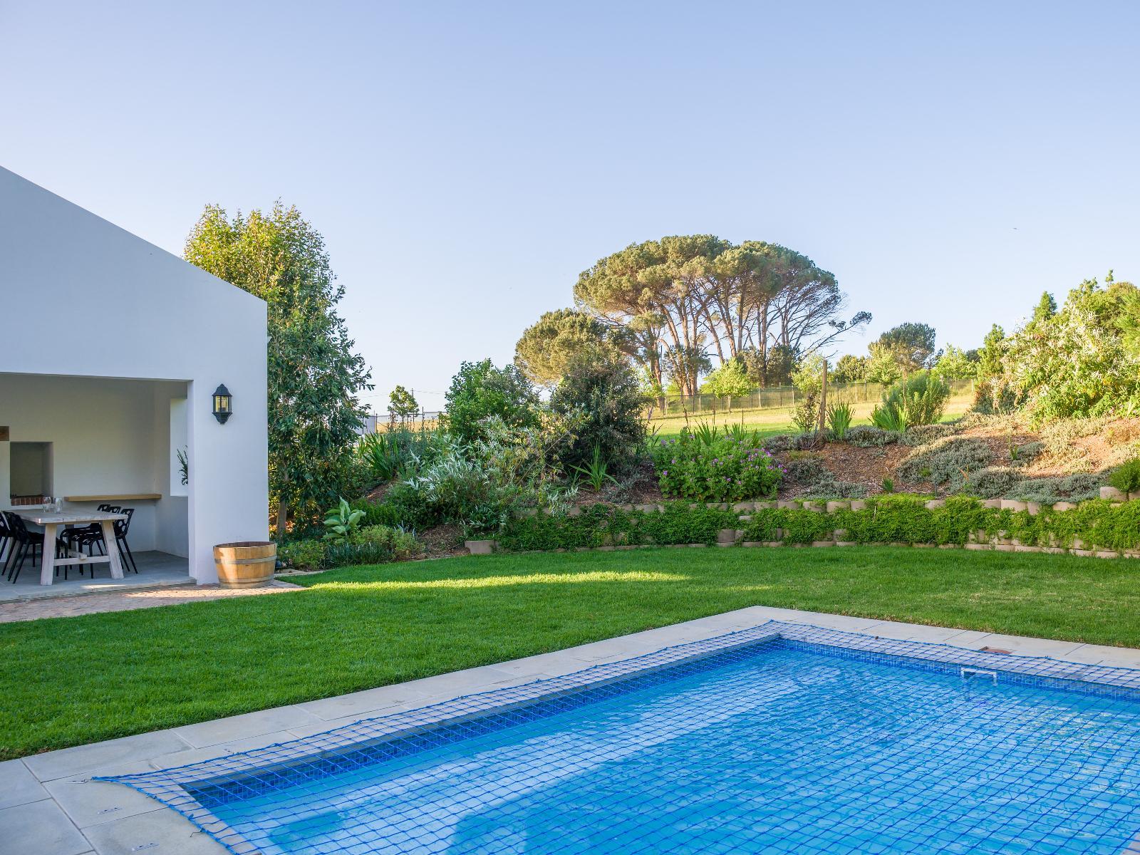A barn beautifully restored into a tranquil villa. The home has 3 bedrooms, 2 king beds and 2 single beds, 3 bathrooms, a fully equipped kitchen, scullery, dining area and living area, as well as a private pool and a pool house with braai area.