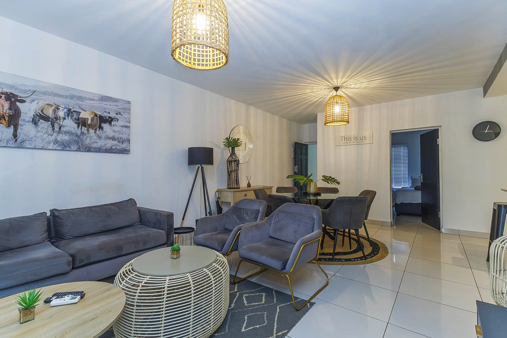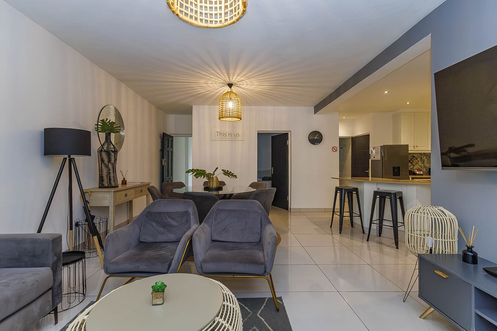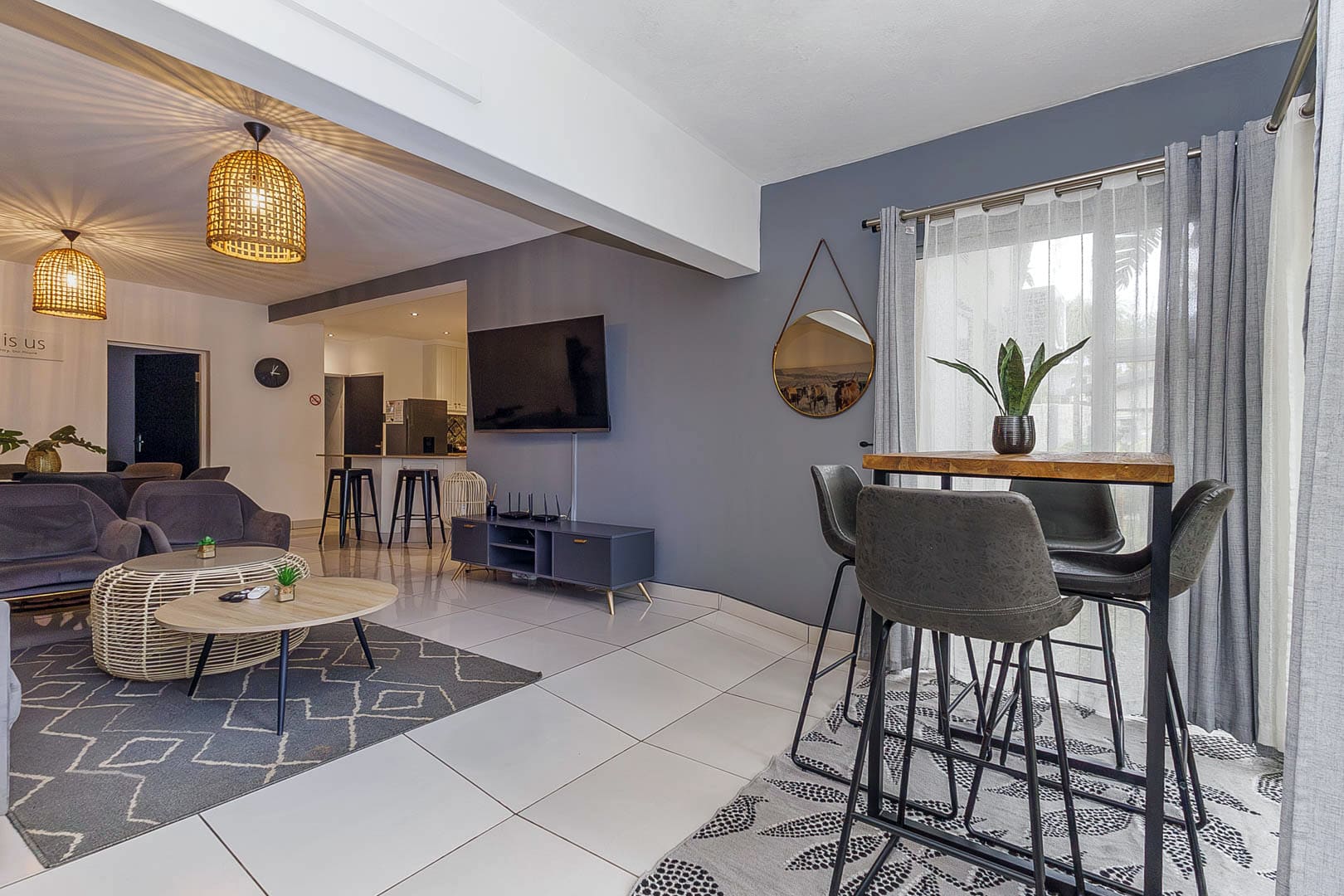 The lounge features a television with a 66-channel DStv holiday package, ideal for relaxed evenings indoors.