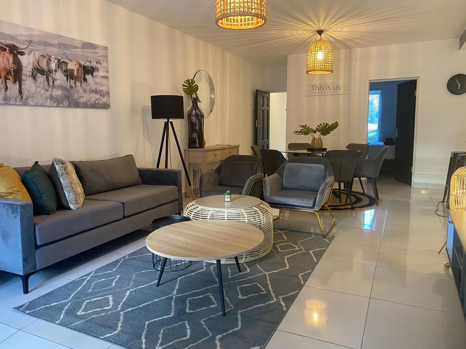 The lounge area includes a television with a 66-channel DStv holiday package, ideal for relaxed evenings after a day of exploring.
