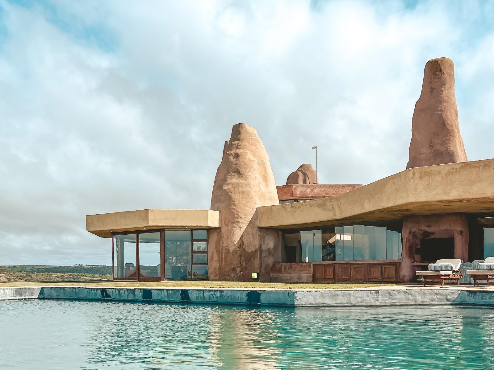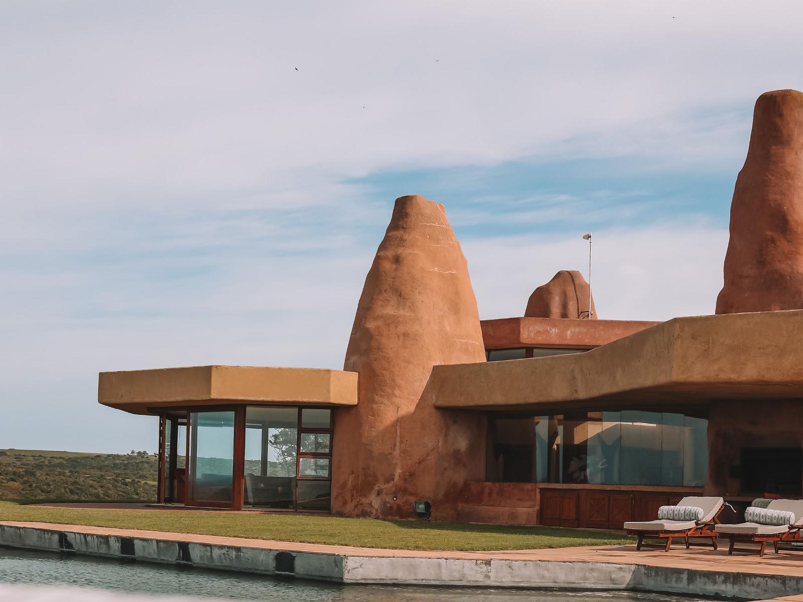 The estates turrets, reaching through and beyond the double-volume ceilings, invoke a surreal reflection of a termite mound, or a loosely-formed, surreal sandcastle.