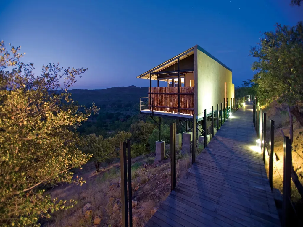 Discover the allure of the northern Kruger National Park at The Outpost, an extraordinary gem offering 12 expansive guest spaces and award-winning architecture suspended over the secluded Luvuvhu River valley. Nestled in the Eden of Kruger, this remarkable area is renowned for hosting 80% of the park’s biodiversity. Immerse yourself in the untamed wilderness through guided bush walks and drives, or simply revel in the 180˚ panoramic views from the comfort of your room. Let the local staff regale you with captivating tales of the region’s rich history around the campfire as you drift to sleep, serenaded by the enchanting sounds of the African night.
