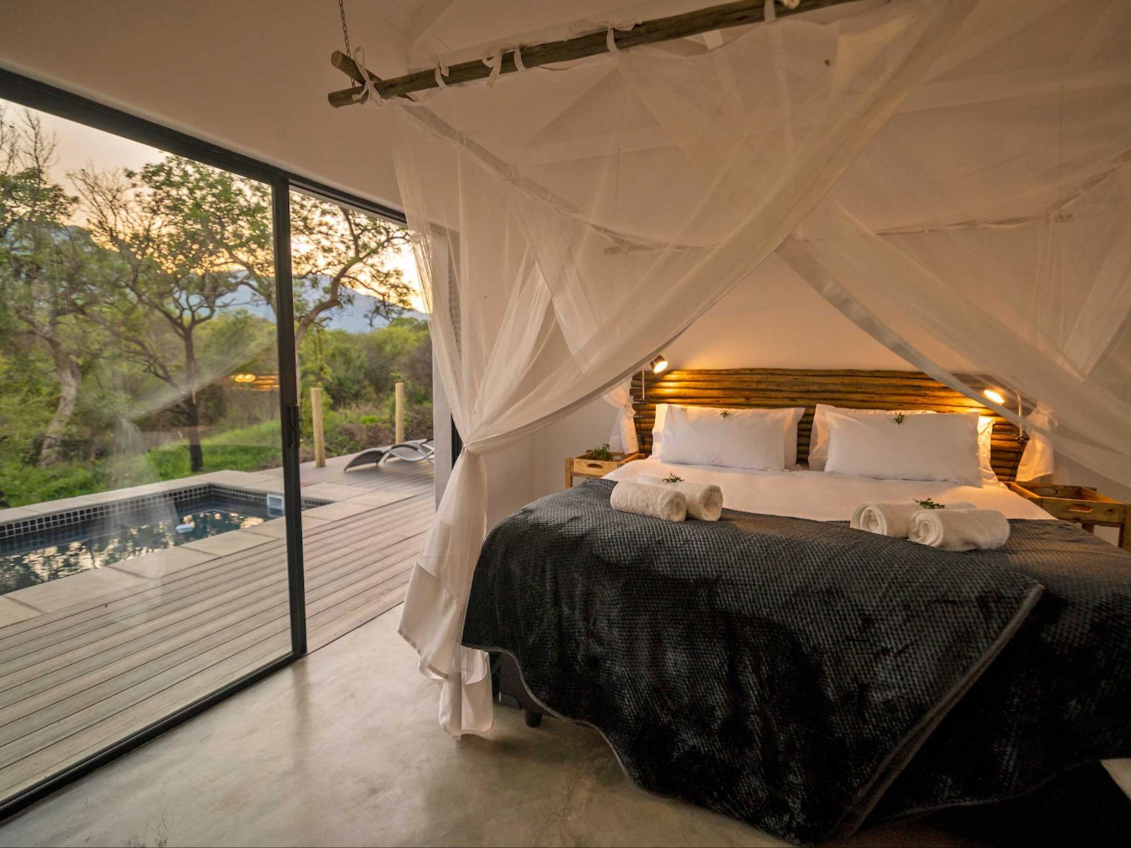 All cottages are set in one line – along a drainage line – with magnificent views towards pristine bushveld and the mountainside.