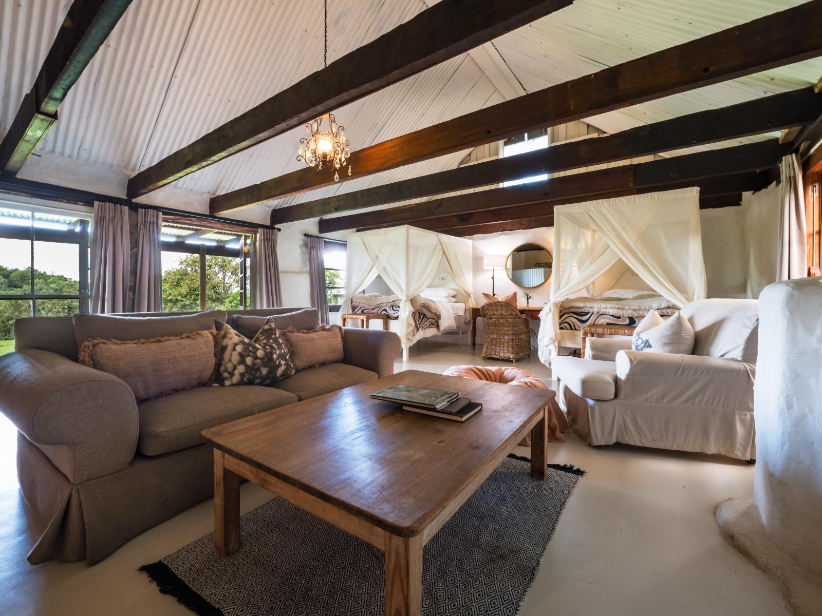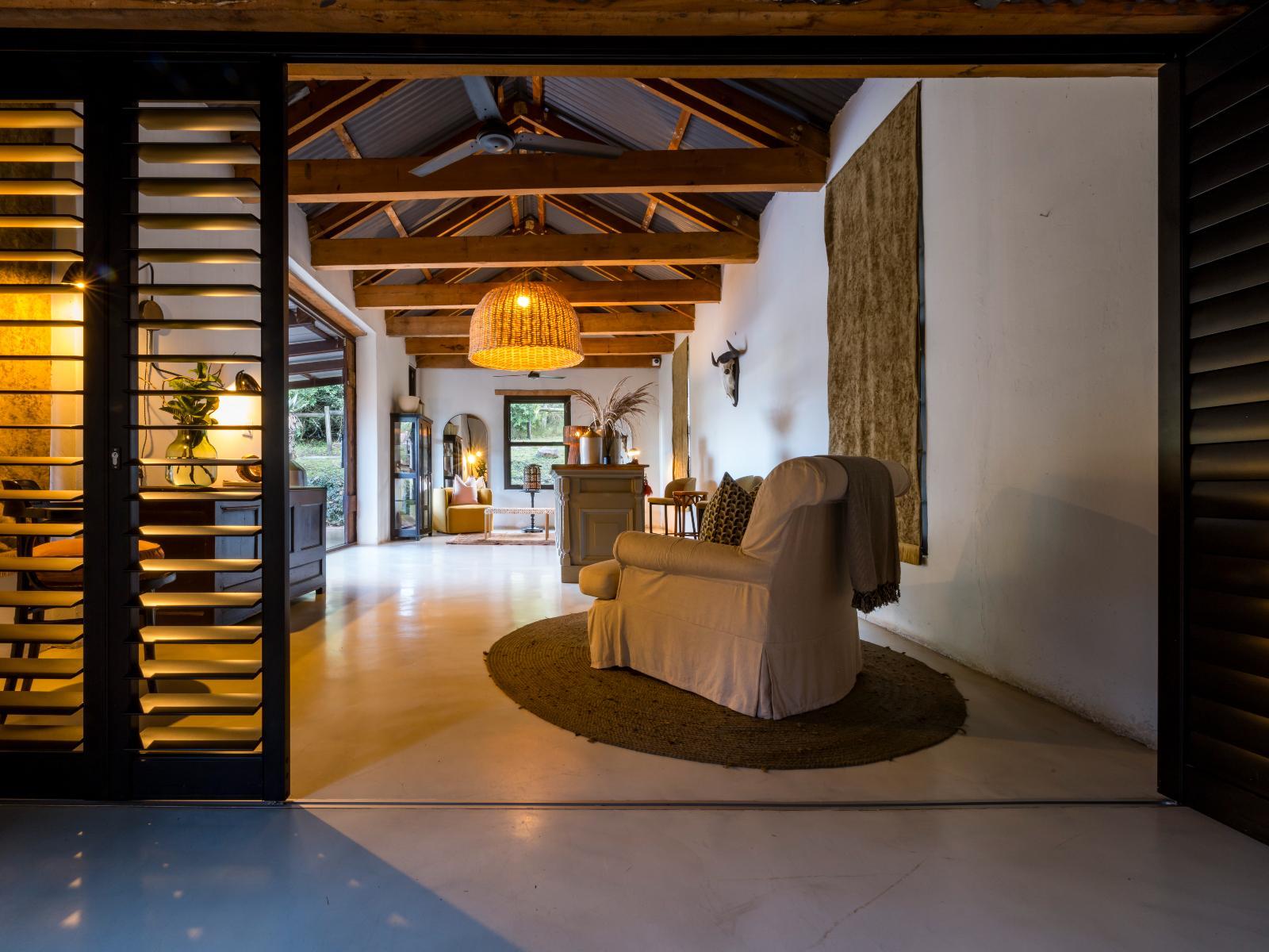 Belle Balance Bush Hideout has a lovely plunge pool, big outdoor swimming pool with lounges, comfortable sofas and chairs on the veranda, an attractive lounge and beautiful farmhouse dining room, there are fireplaces everywhere to ensure a cozy environment where guests can sink into a plush chair and relax.