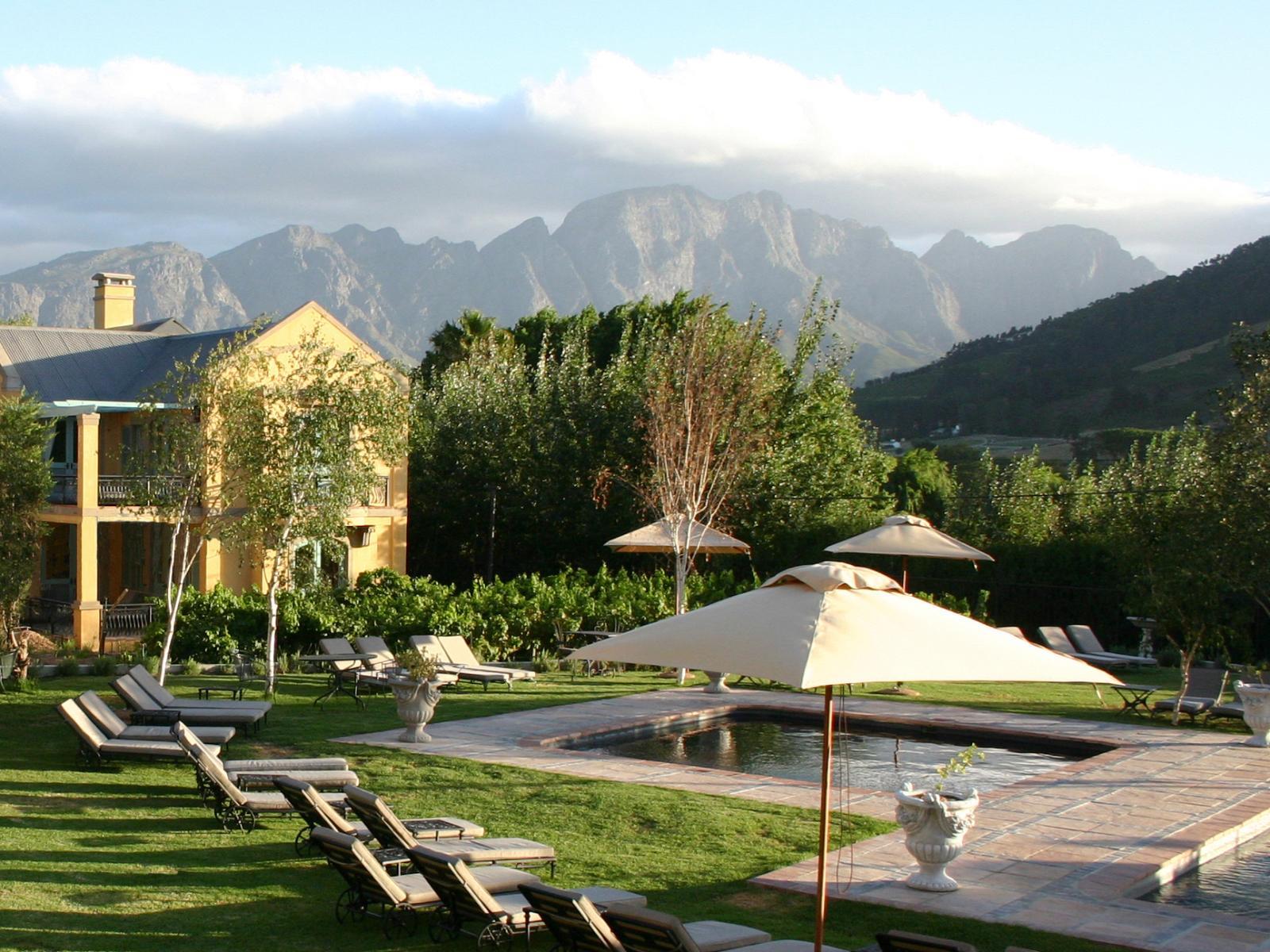 Franschhoek Country House & Villas offers exceptional five-star hotel accommodation in the heart of the Franschhoek valley. Your stay is complemented by the acclaimed Monneaux Restaurant and a bouquet of world-class guest services. Situated on the outskirts of the Franschhoek village, this is the ideal base from which to indulge your tastes for fine wines, world-class cuisine, and the unique attractions of this famous Cape Winelands town.
