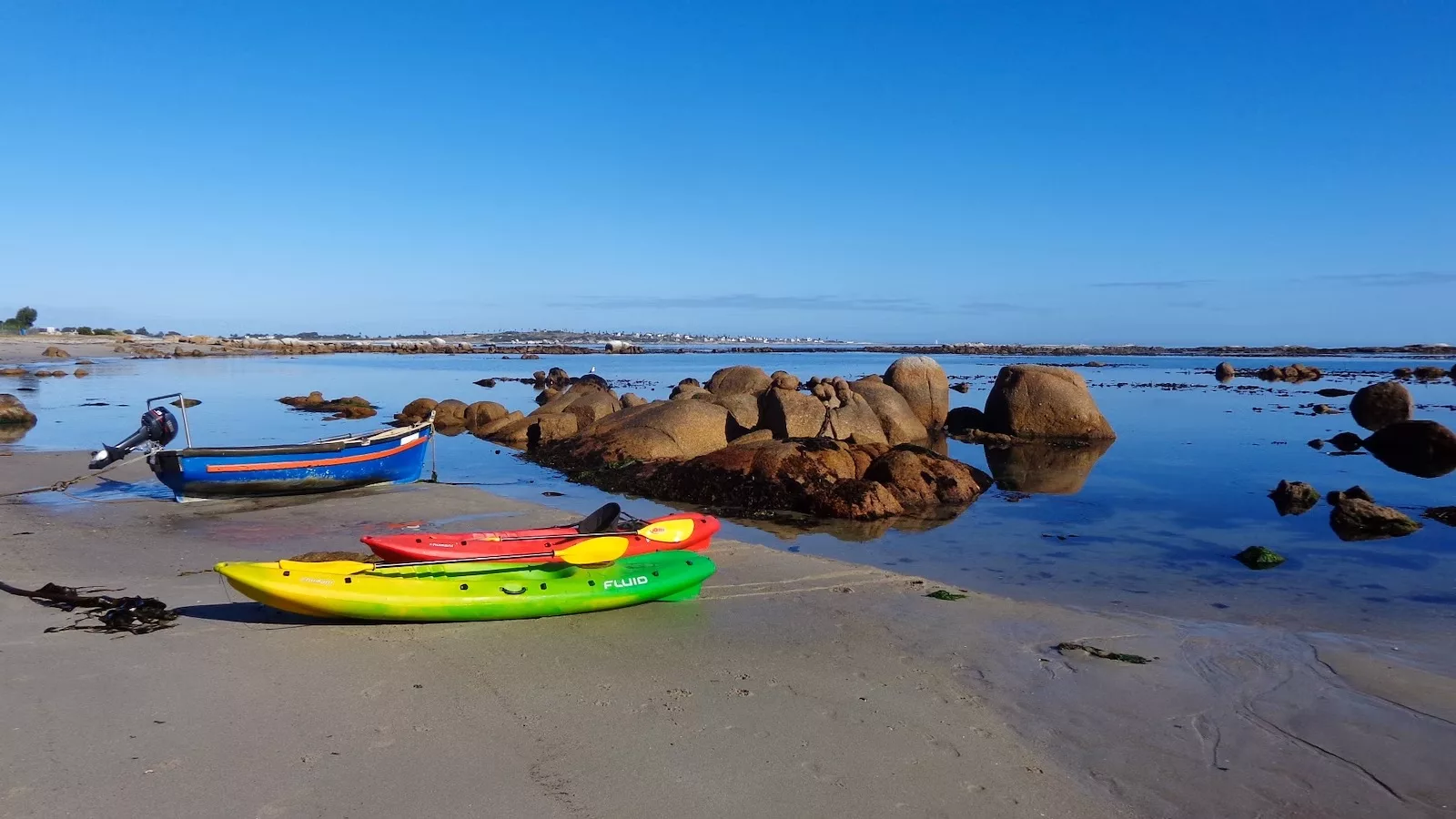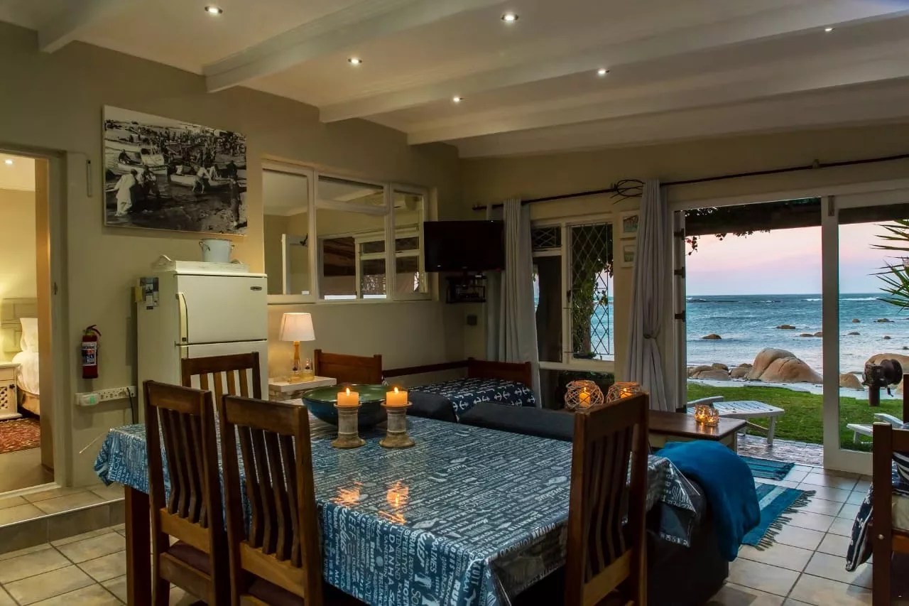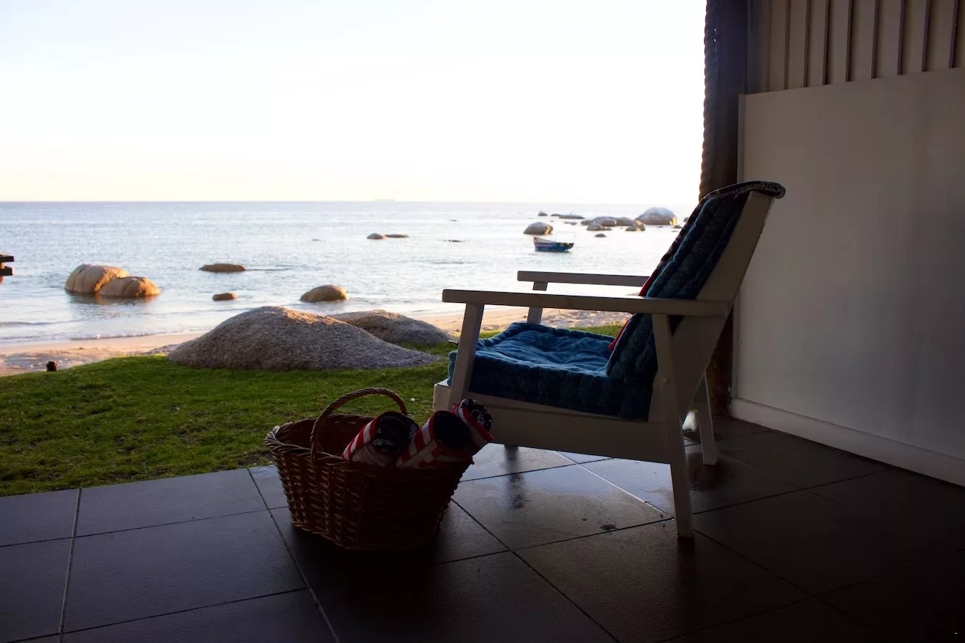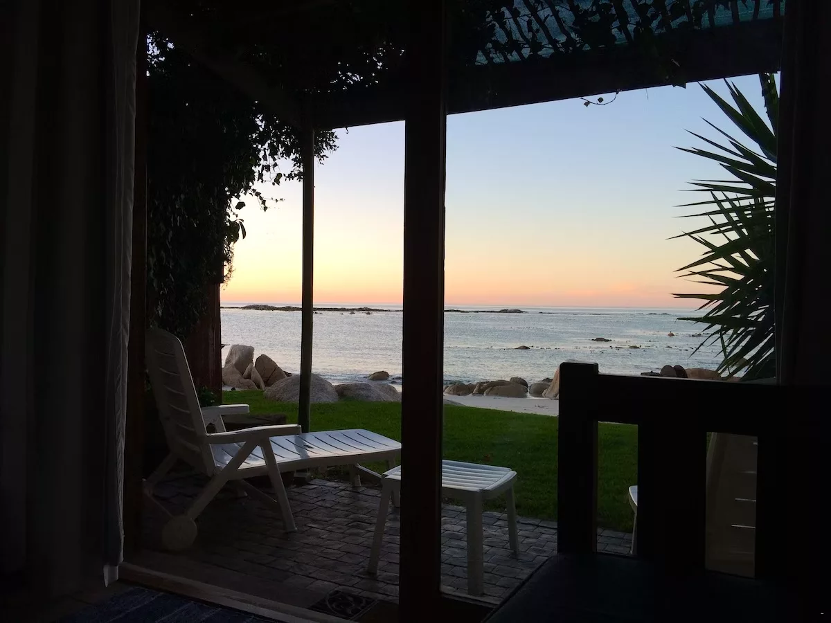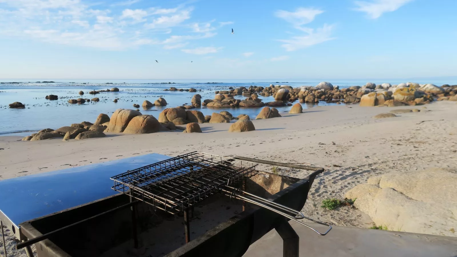 The fully equipped kitchen includes everything you need for a traditional braai on the semi-enclosed patio. The patio is right on the beach and in winter time, you can close it off with two separate roll-up screens or keep it open to enjoy the only place in the southern hemisphere where the sun rises and sets over the ocean!