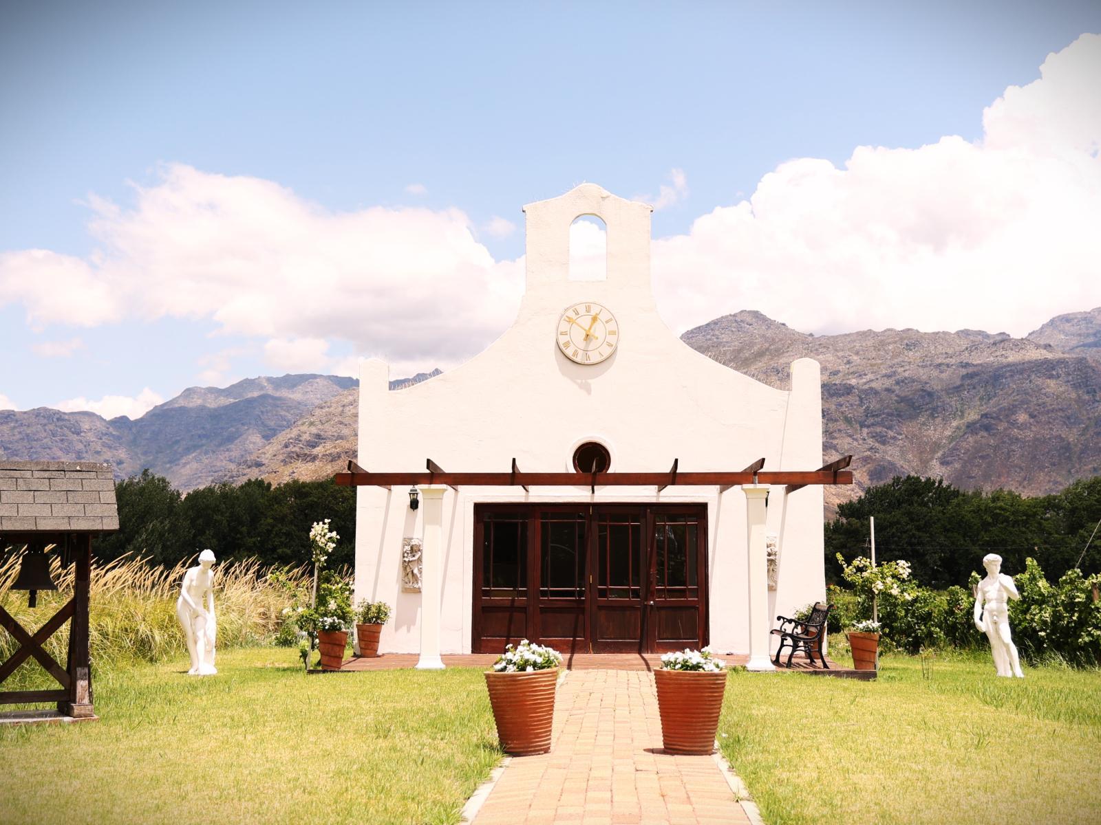 We are located on the R45 towards Franschhoek. Surrounded by wine estates, we are one of the few boutique wine estates offering accommodation, a wedding chapel, and function facilities. Magnificent mountains surround us.