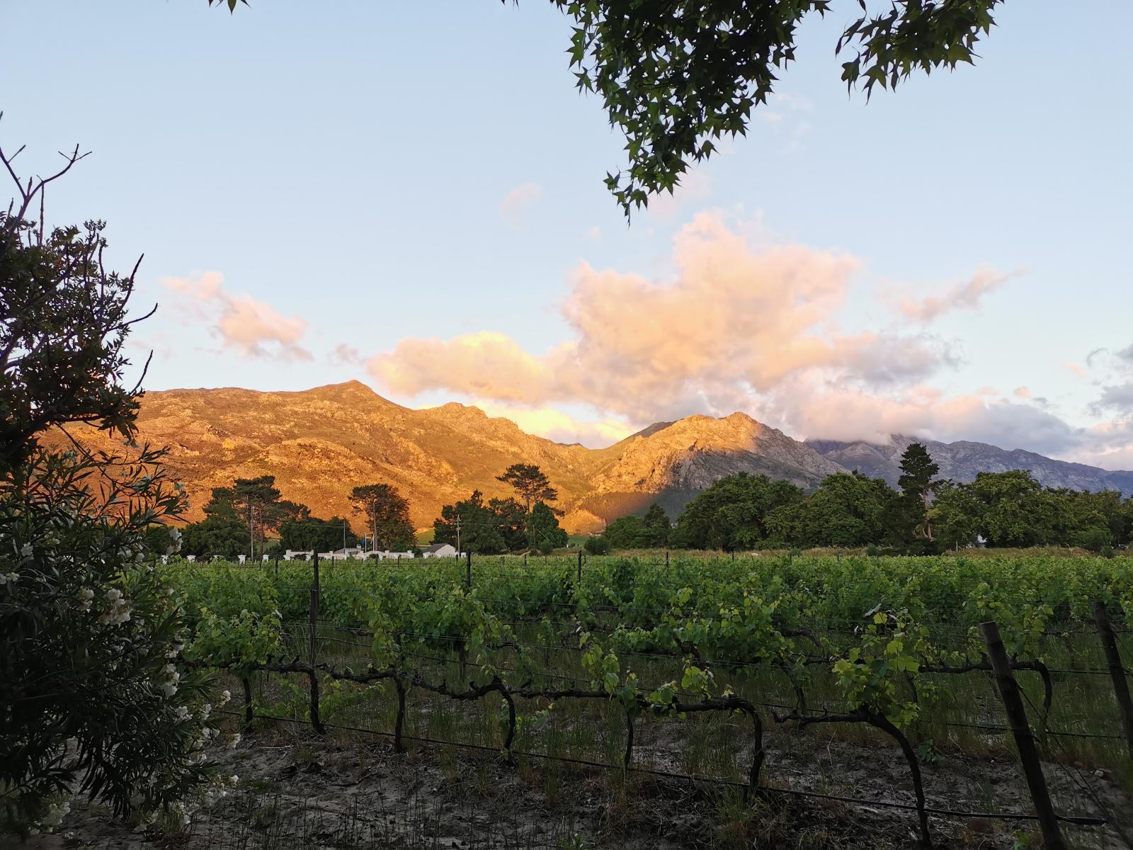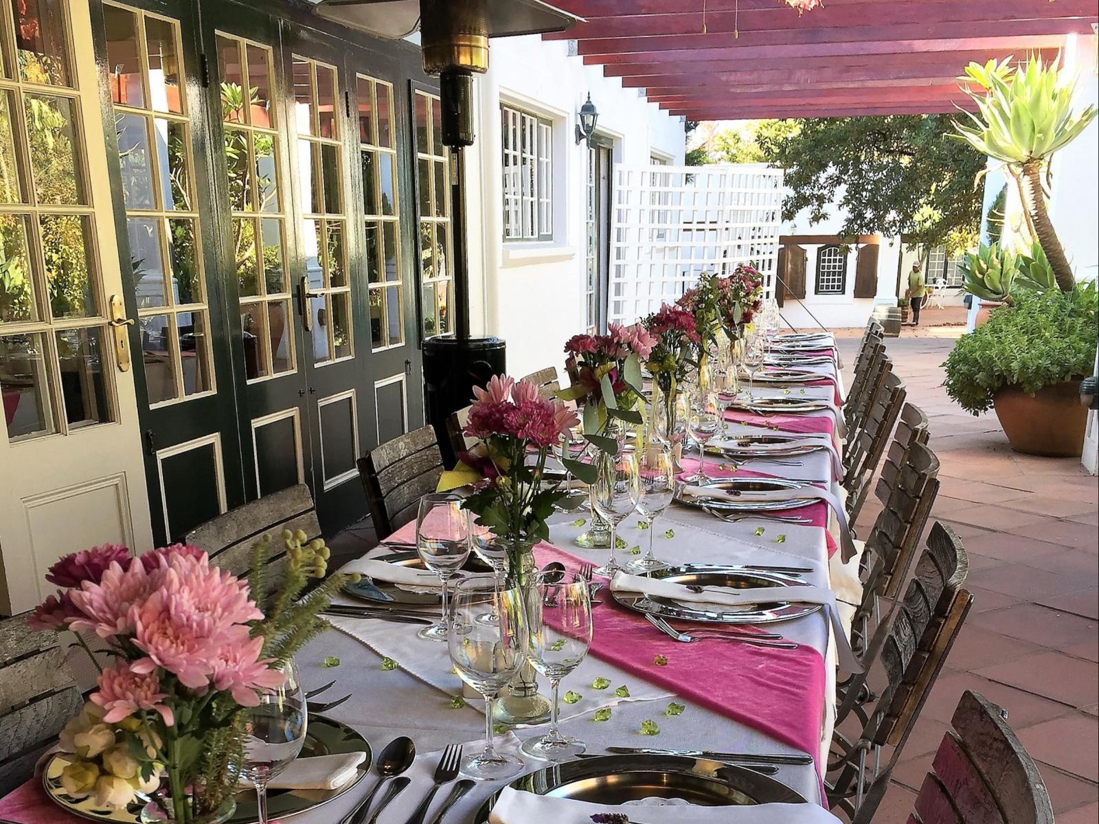 Continental & Hot Breakfast is served overlooking the Klein Drakenstein Mountain and vineyards.