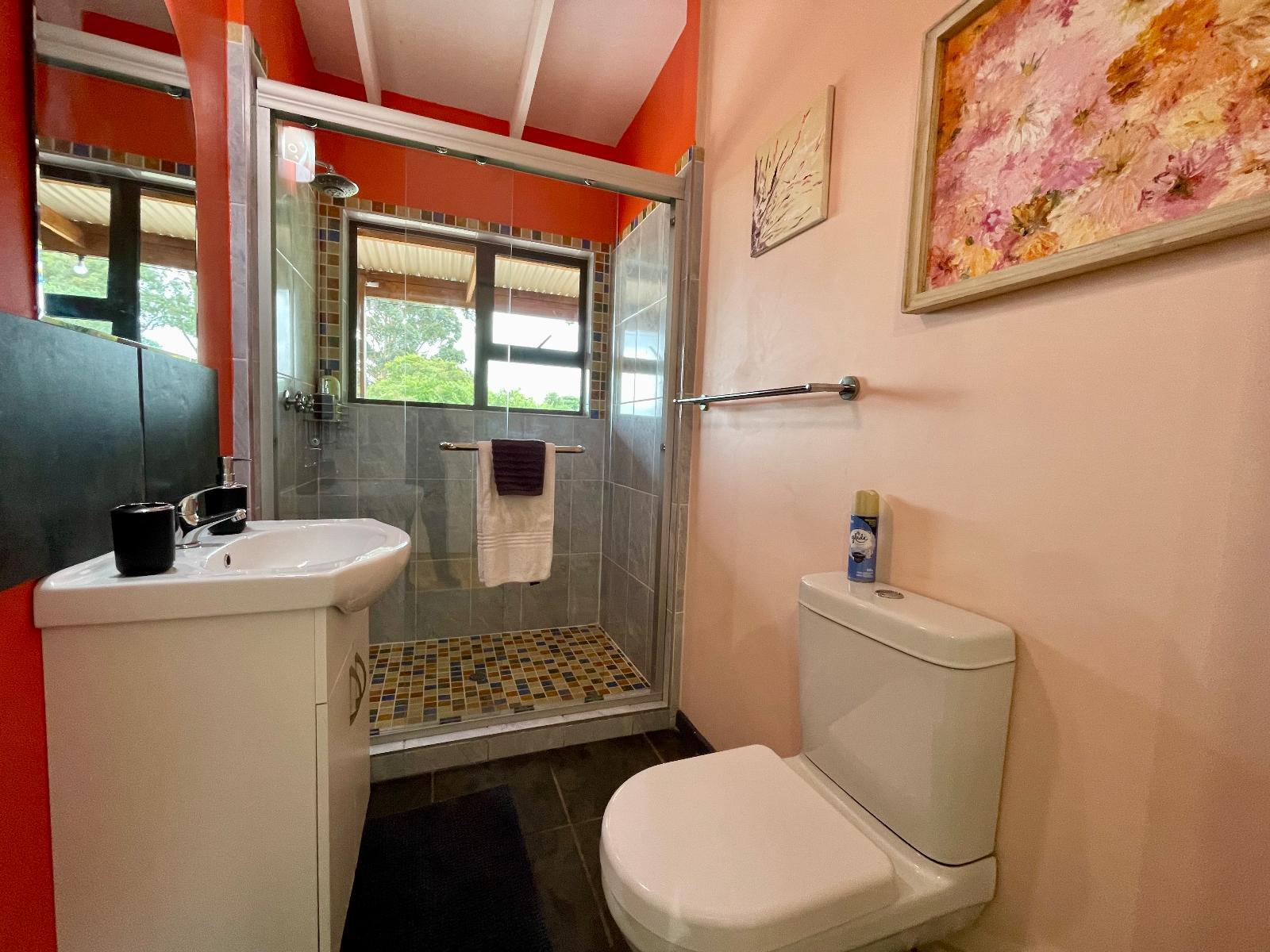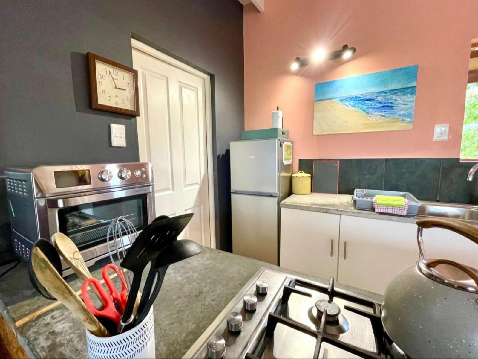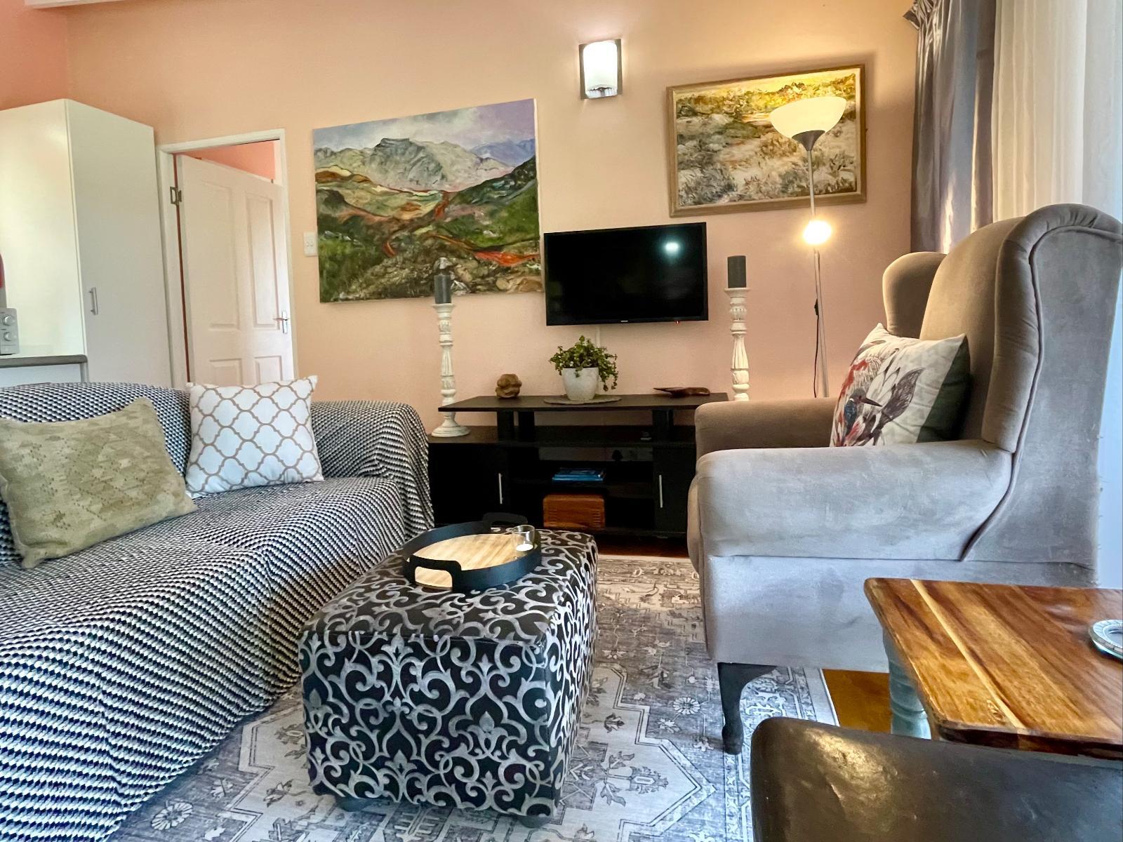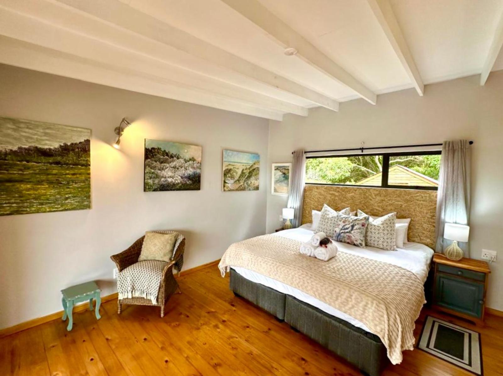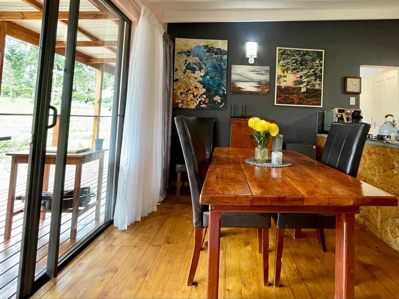 Pet friendly stylish 2 bedroomed, ensuite cottage. Amazing views, off grid, with an enclosed garden. Full kitchen and deck with gas or wood braai. Wifi, Smart TV and access to the beautiful Equleni farm walks and pool. 4 adults, sleeper couch for 2 kids